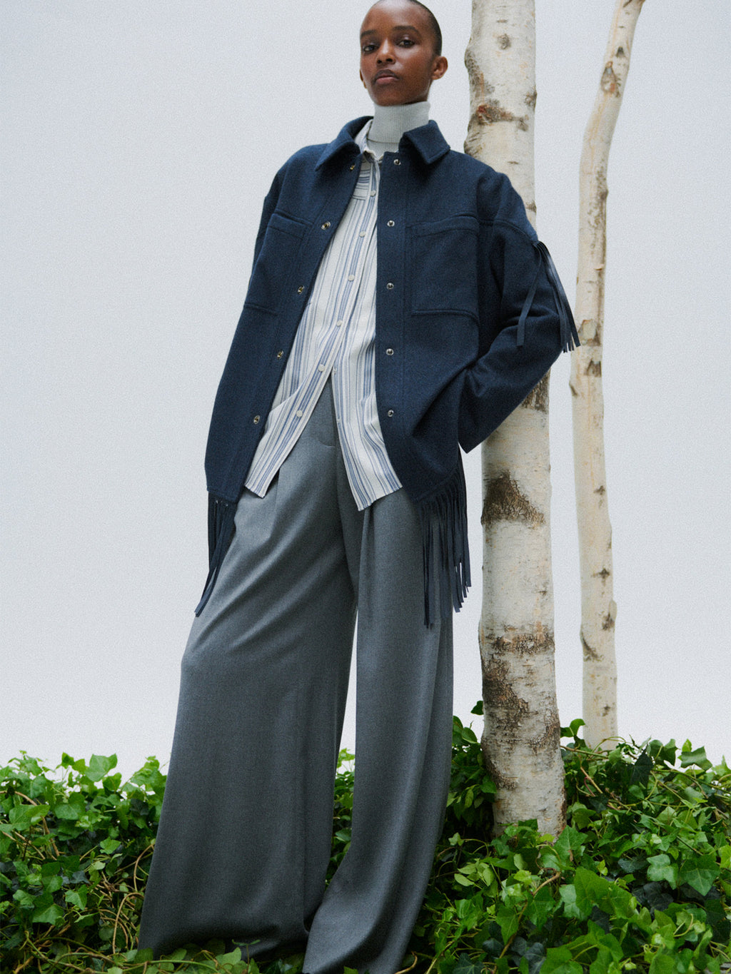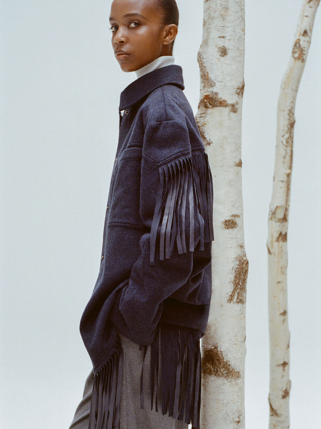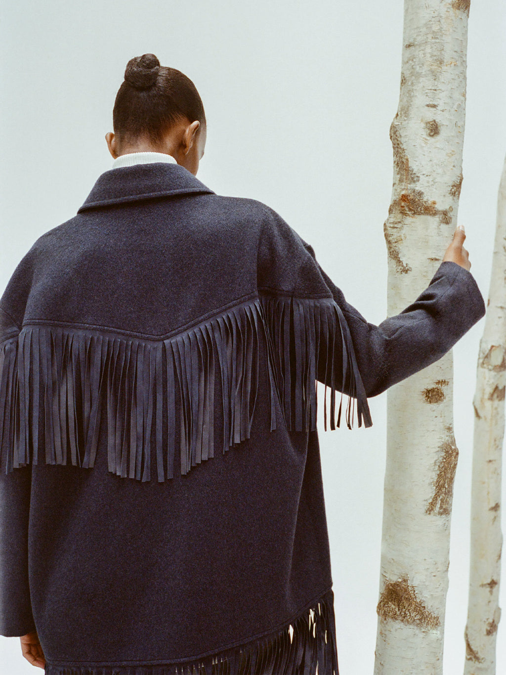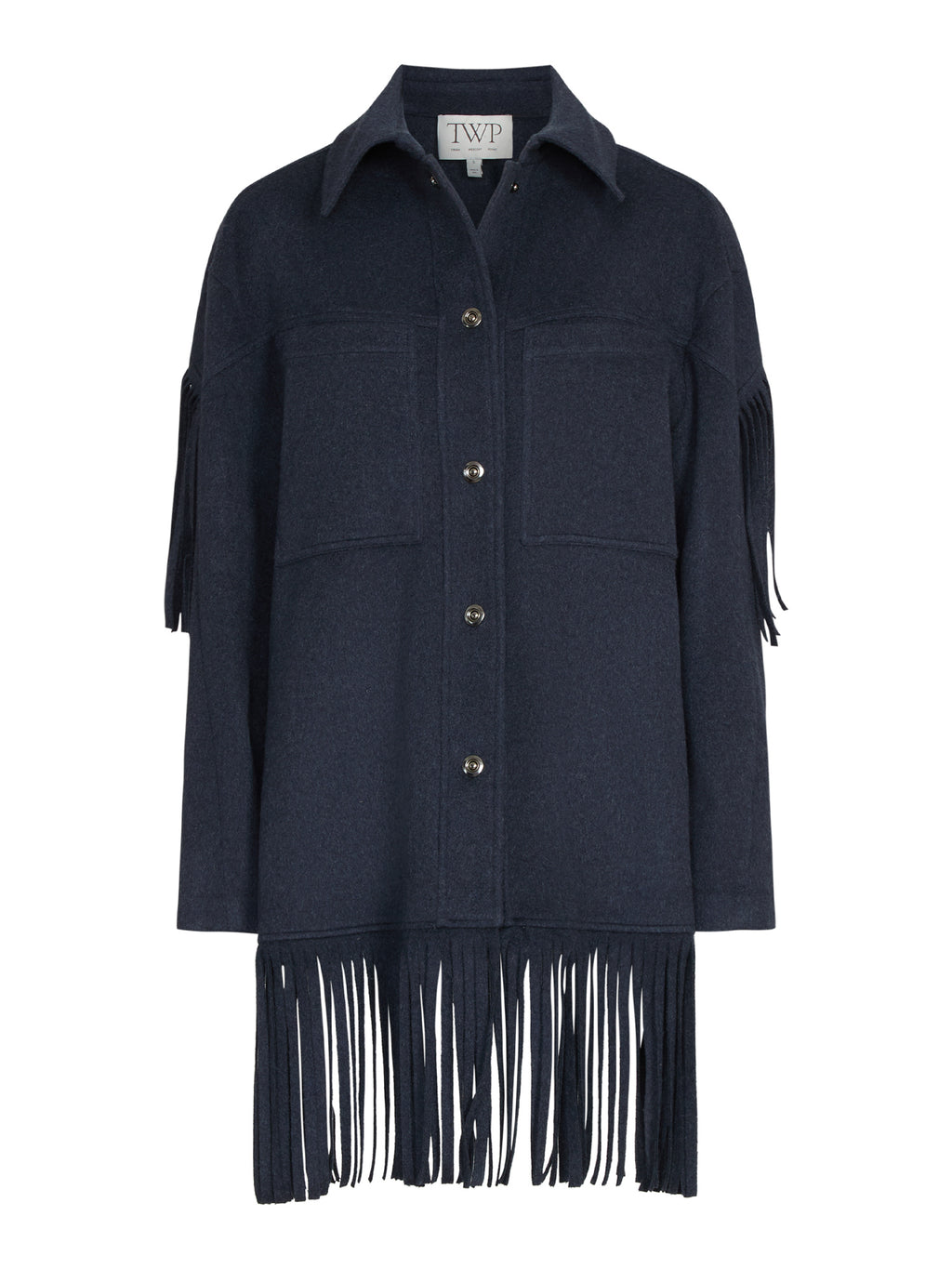 The Midnight Cowboy Cashmere Jacket by TWP reimagines Western style in luxe cashmere. Relaxed and effortlessly cool, it features fringe detailing that adds movement and attitude.