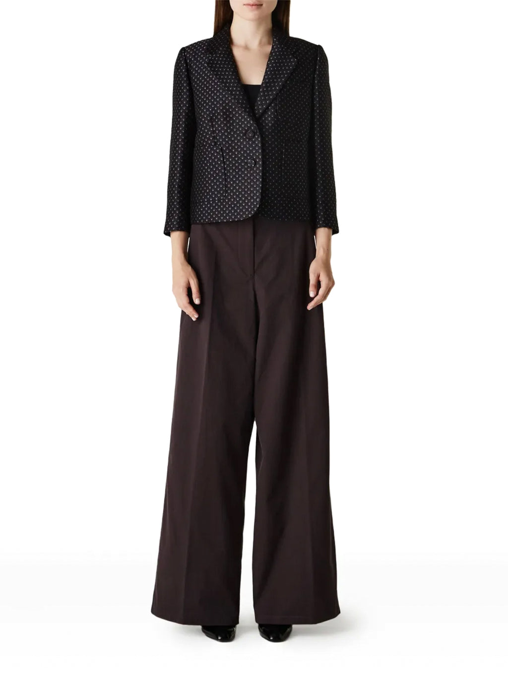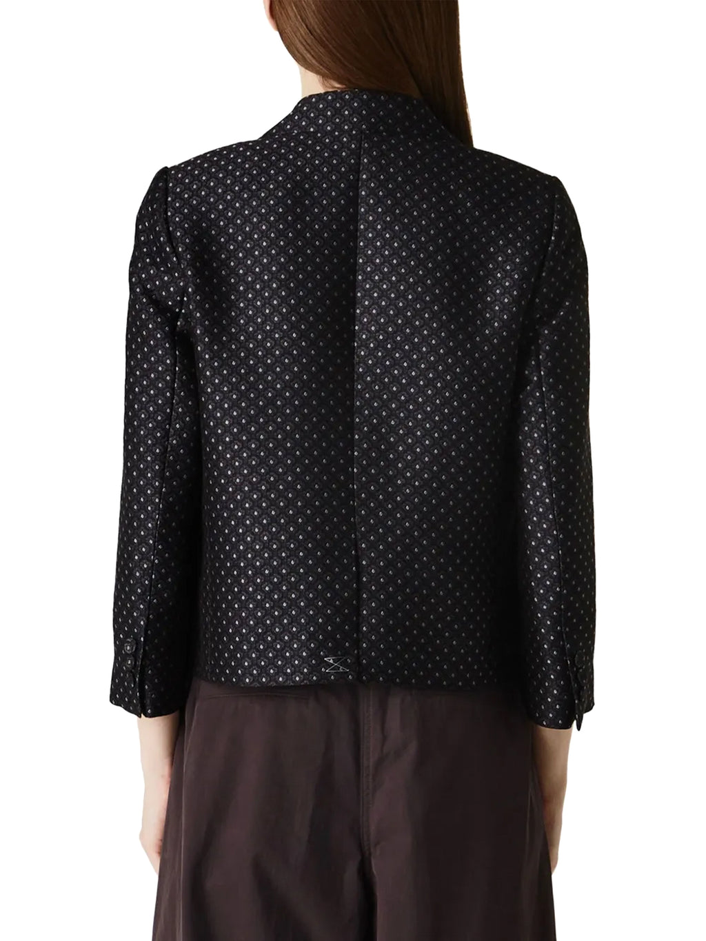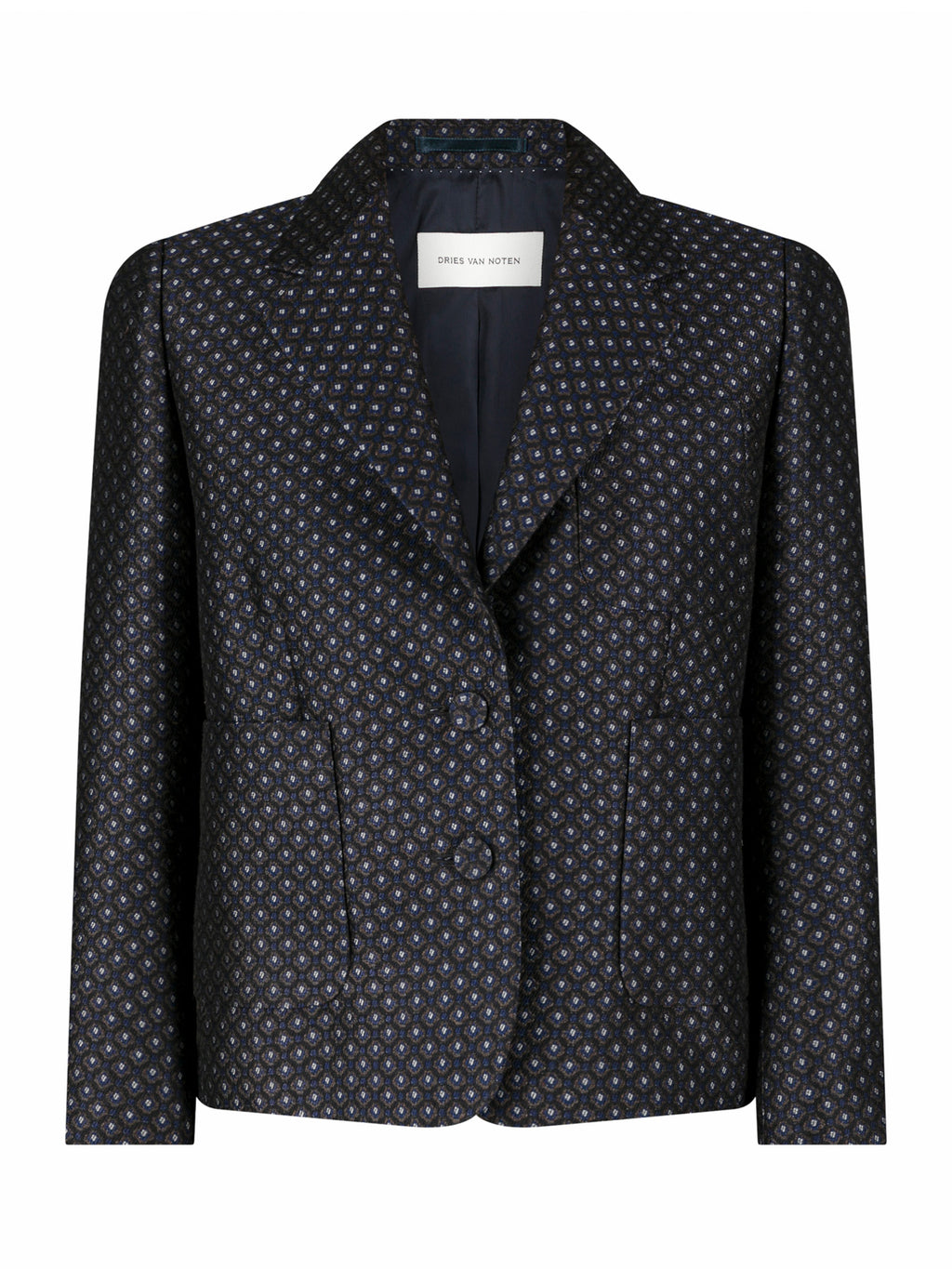 Dries van Noten’s Bamis Wool Jacquard Blazer is tailored in a wool, cotton, and linen blend with jacquard-woven tie-inspired motifs. The cropped, boxy silhouette is finished with covered buttons and three pockets, offering a sharp layer over tailoring or dresses. -