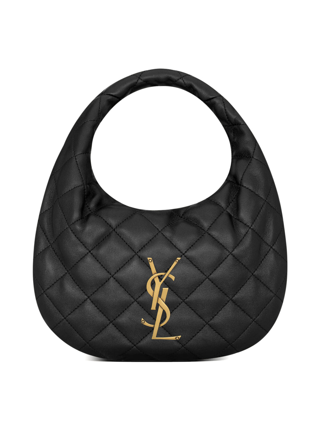 Saint Laurent’s Icarino Bag is the baby version of the iconic ICARE, crafted from supple nappa lambskin and finished with diamond-quilted topstitching and the signature Cassandre. Lightweight and modern in design, it is intended to be carried by hand and features a leather lining, bronze-tone hardware, and a secure zip closure.