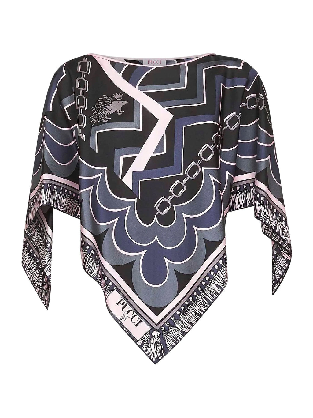 Pucci transforms a simple silhouette into a statement with the Silk Handkerchief Poncho. The design cascades gracefully with a handkerchief hem that moves beautifully with the body. Finished with a wide boat neckline, this piece embodies sophistication with unmistakable impact. Style with the matching printed trousers for a head-to-toe Pucci moment.