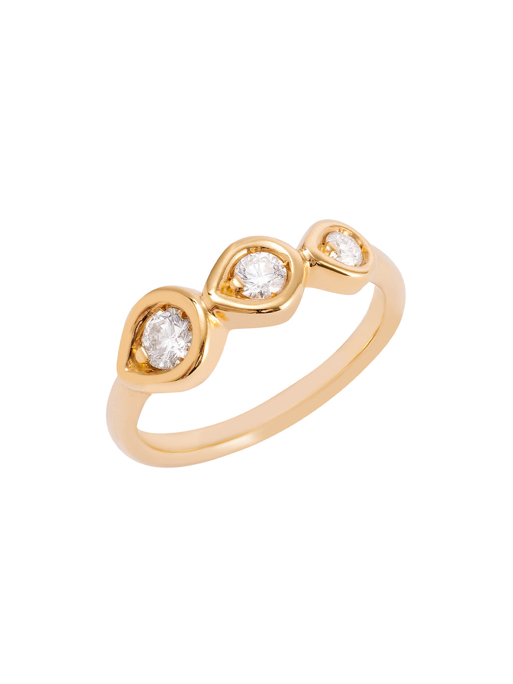 The 3 Drops Ring by Giovana Brait is crafted in 18k yellow gold and set with three diamonds in teardrop-shaped settings. Beautiful to stack, it pairs seamlessly with other pieces from the Wave Collection. This piece is ineligible for promotional discount. -