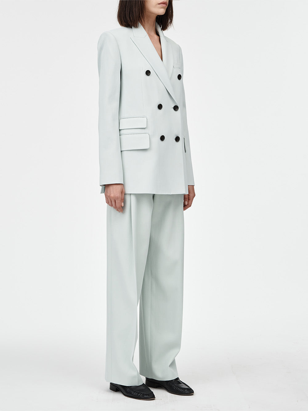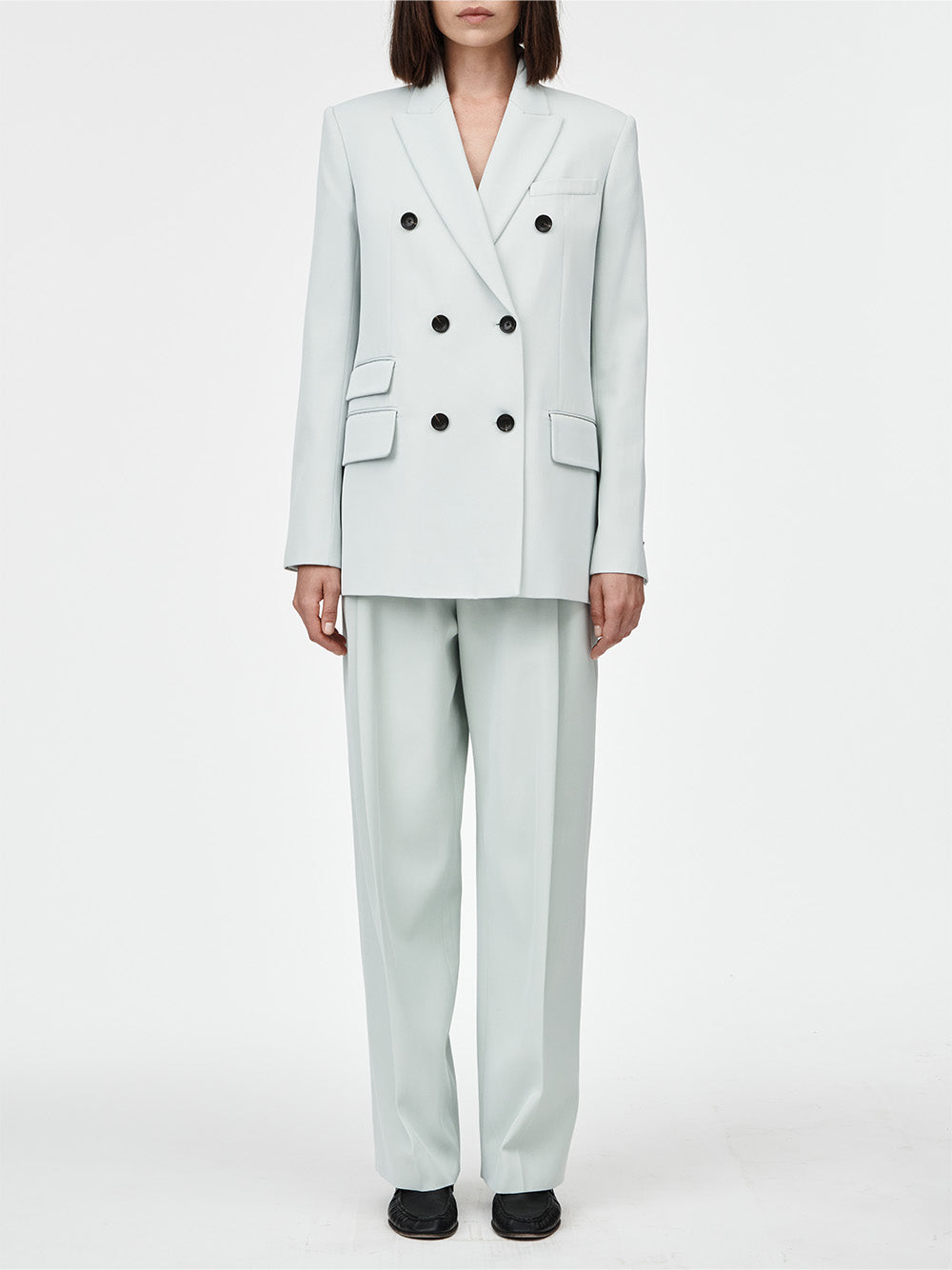The Billiet Blazer by Maria McManus is a beautifully crafted double breasted blazer completed with peak lapels, a six button closure and chest pocket detailing. Pair with the matching pants to complete the look.