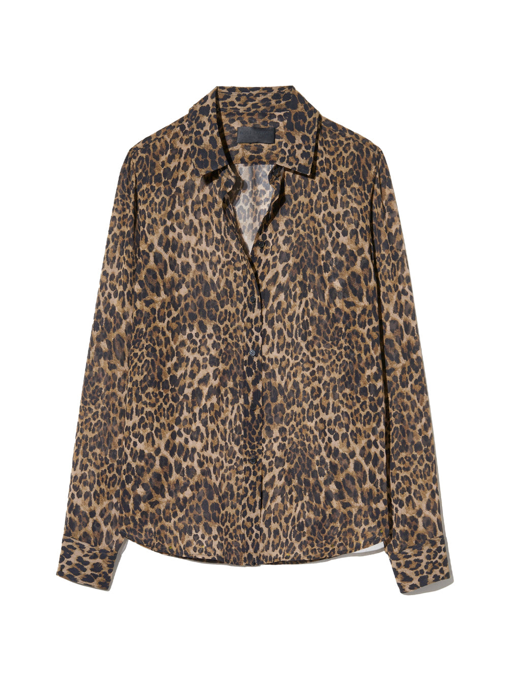 The Gaia Leopard Silk Shirt by Nili Lotan is a classic button-up style crafted in leopard-printed silk. It features a straight, slim silhouette with a back yoke, traditional placket, and dyed-to-match logo buttons. A lightweight piece perfect for layering or wearing alone. -