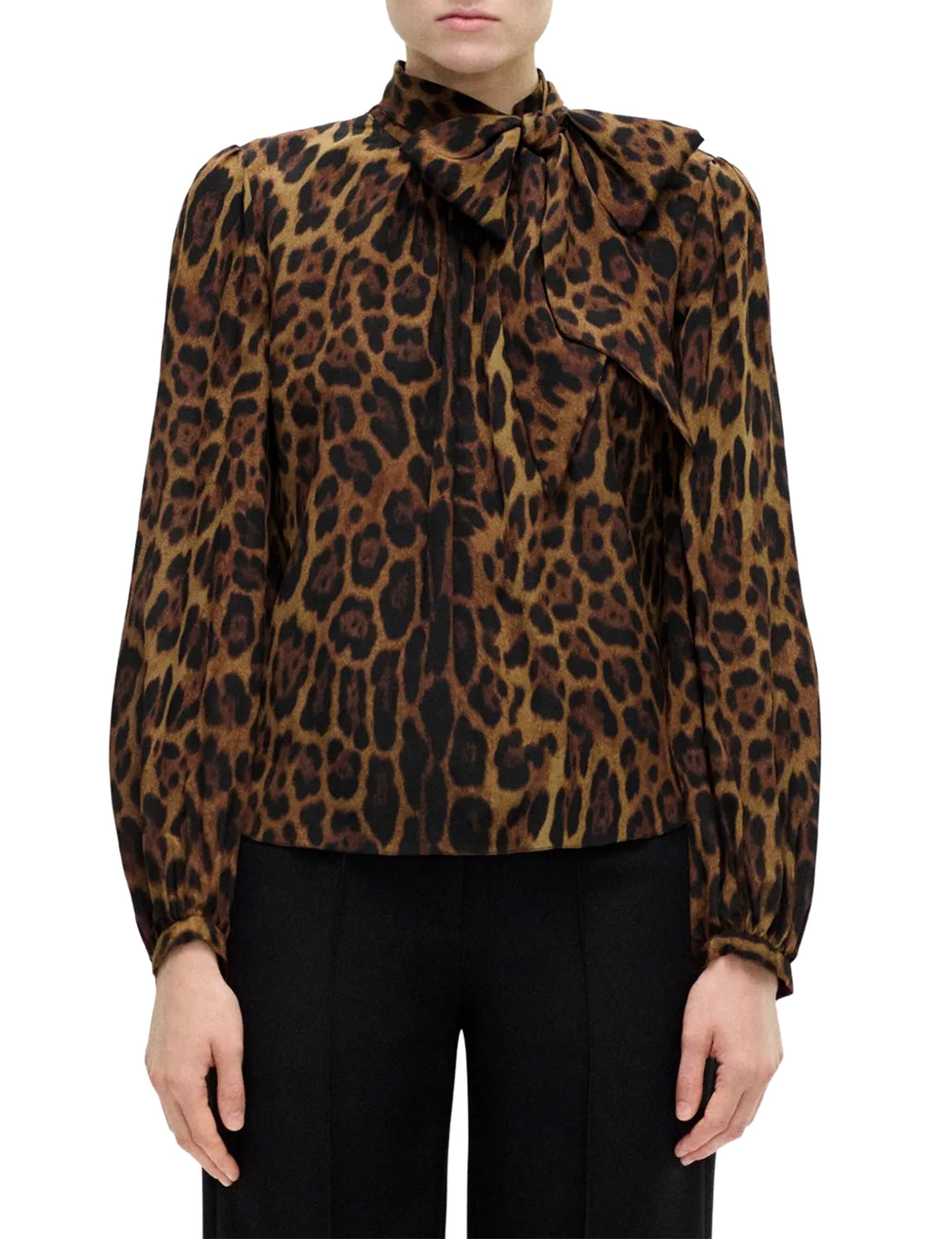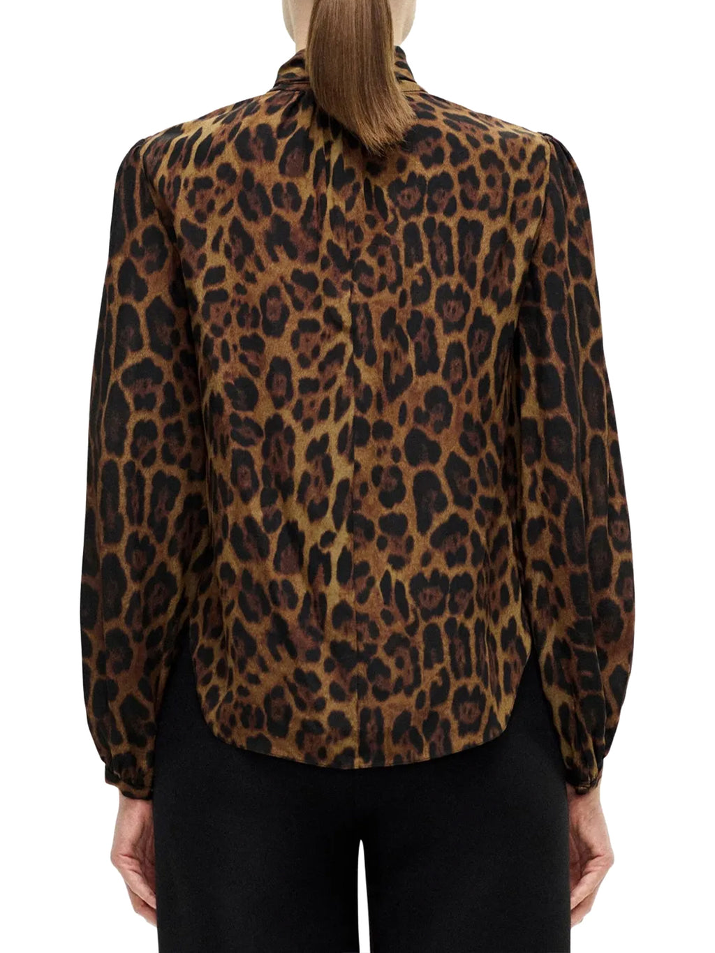 The Joan Blouse by Adam Lippes showcases glamour with its detachable bow neck tie and sheared detailing at the center front and back. Crafted from 100% Italian silk in this season's leopard print, the piece is completed with luxurious thick silk cuffs.