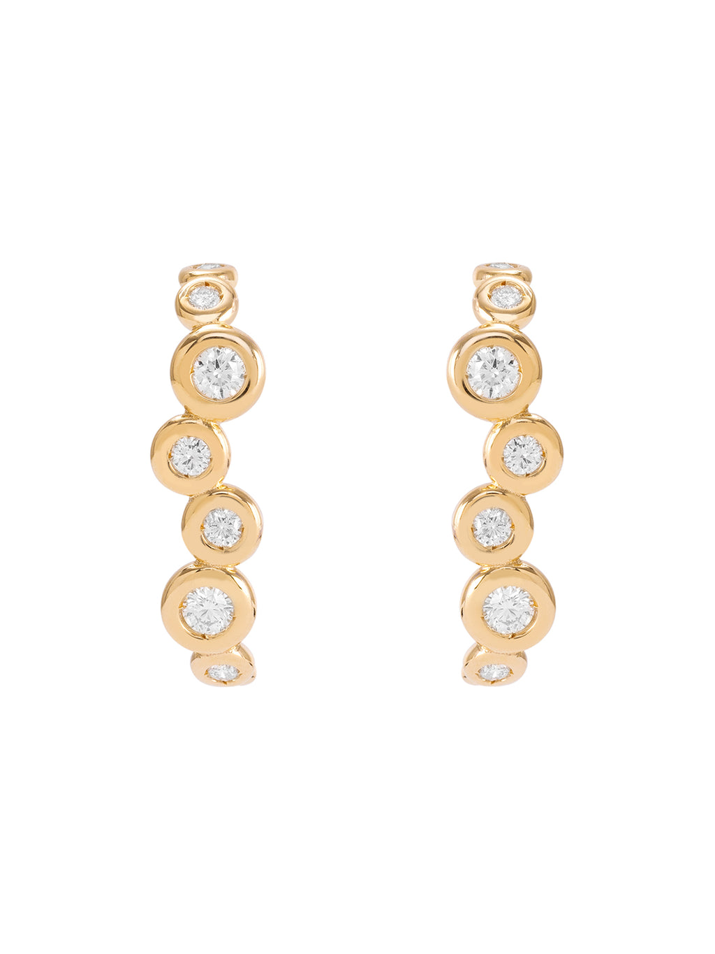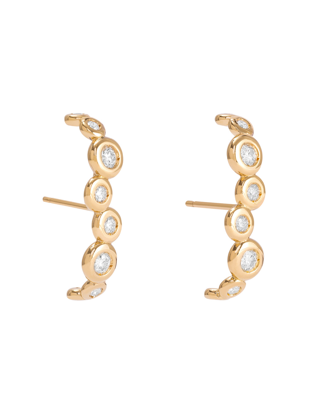 The Single Bubble Hook Earrings by Giovana Brait are crafted in 18k yellow gold with a row of diamonds arranged to gracefully hook around the ear. A distinctive design from the Bubble Collection. This piece is ineligible for promotional discount. -