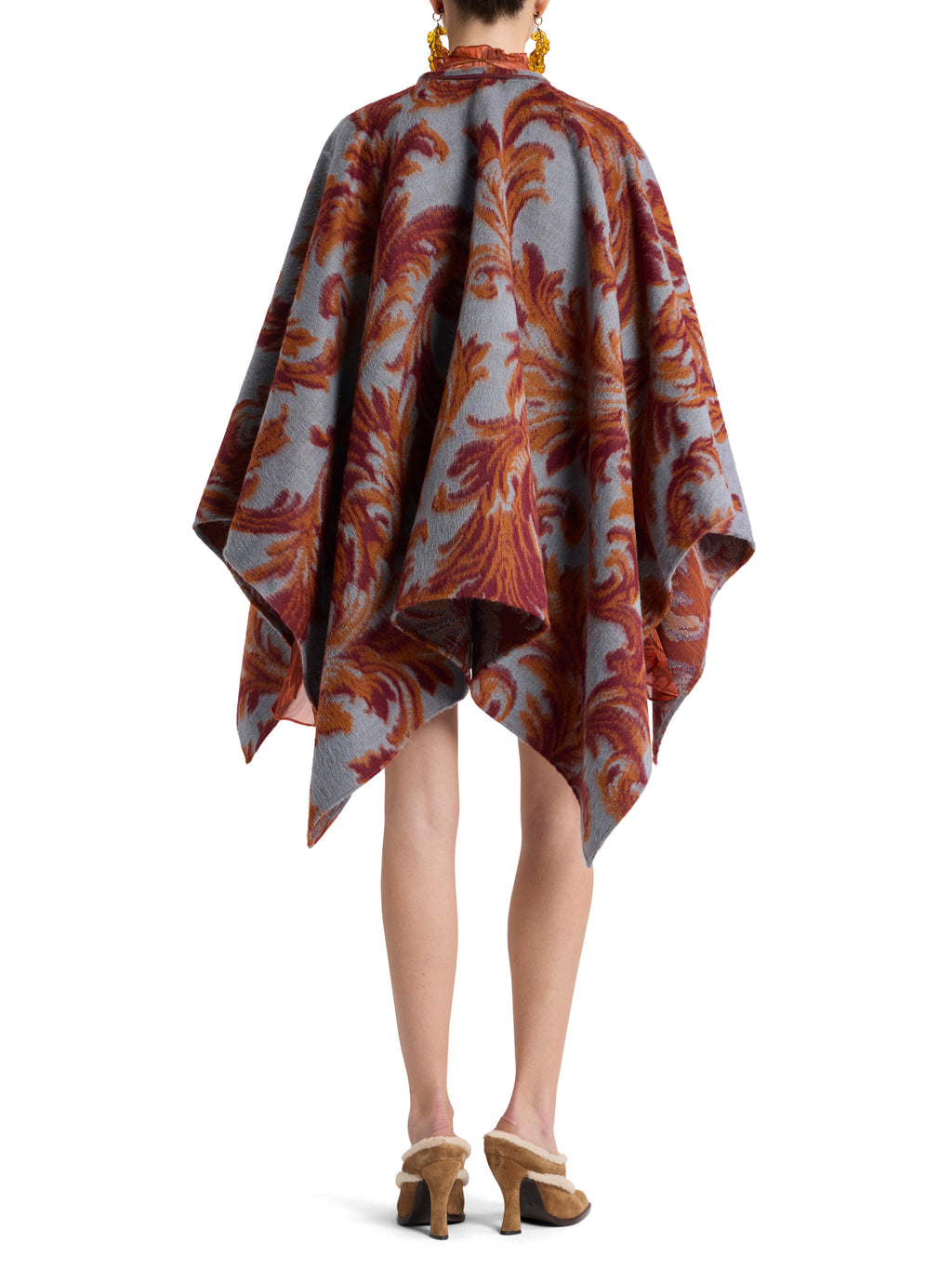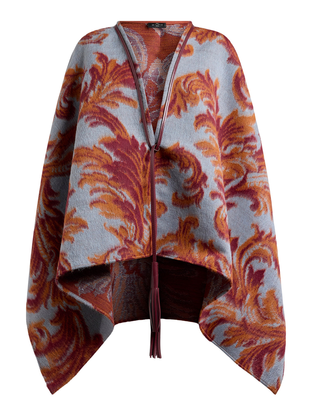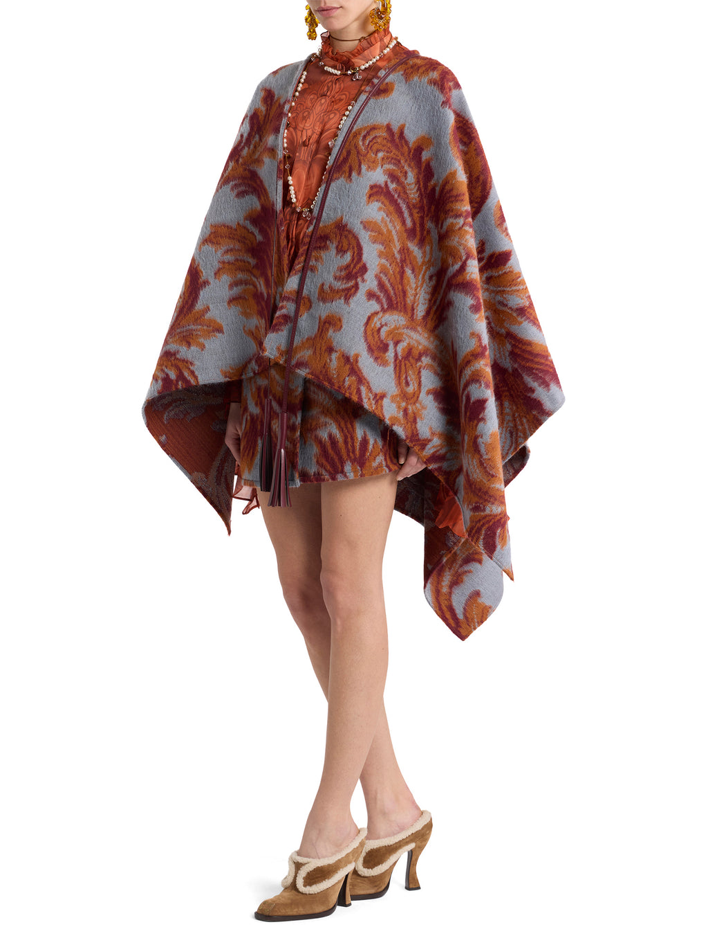 Woven in brushed wool-blend cloth, Etro’s Wool-Blend Cape is defined by its intricate leafy jacquard, an homage to the brand’s storied dialogue with nature. A leather lace closure cinches the neckline, finished with fringe-trimmed tassels that sway with every step. The generous cut creates an easy drape, balancing drama with warmth. Pairing well with slim tailoring for contrast, it also layers beautifully over a flowing dress for evening impact. -