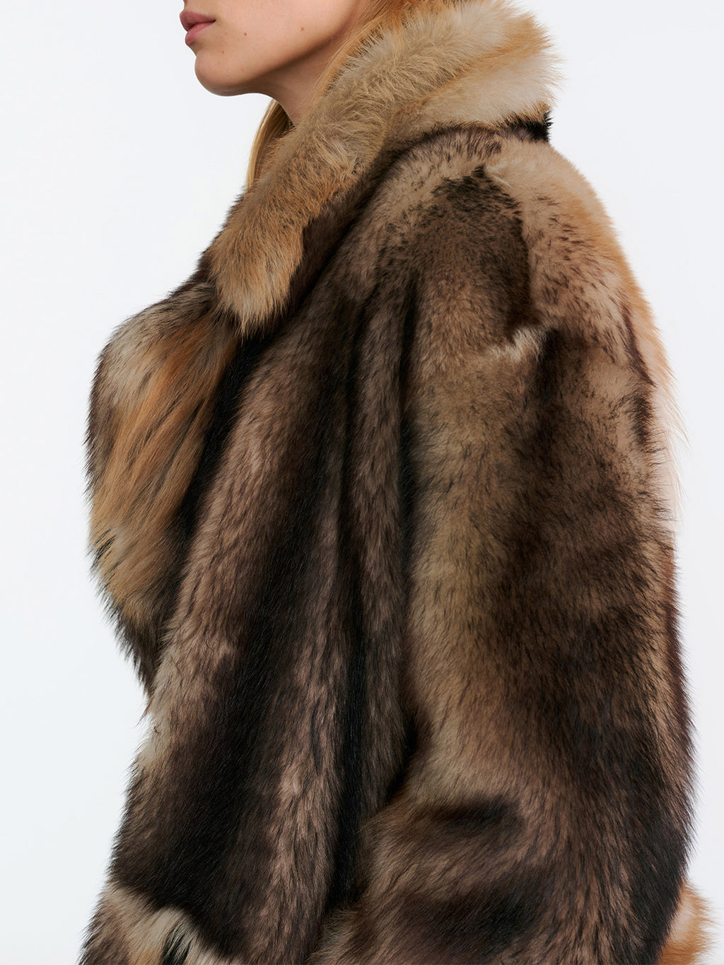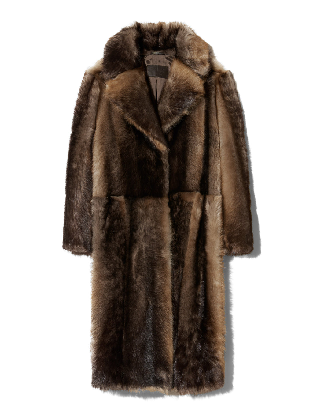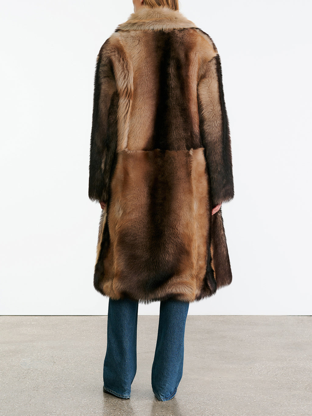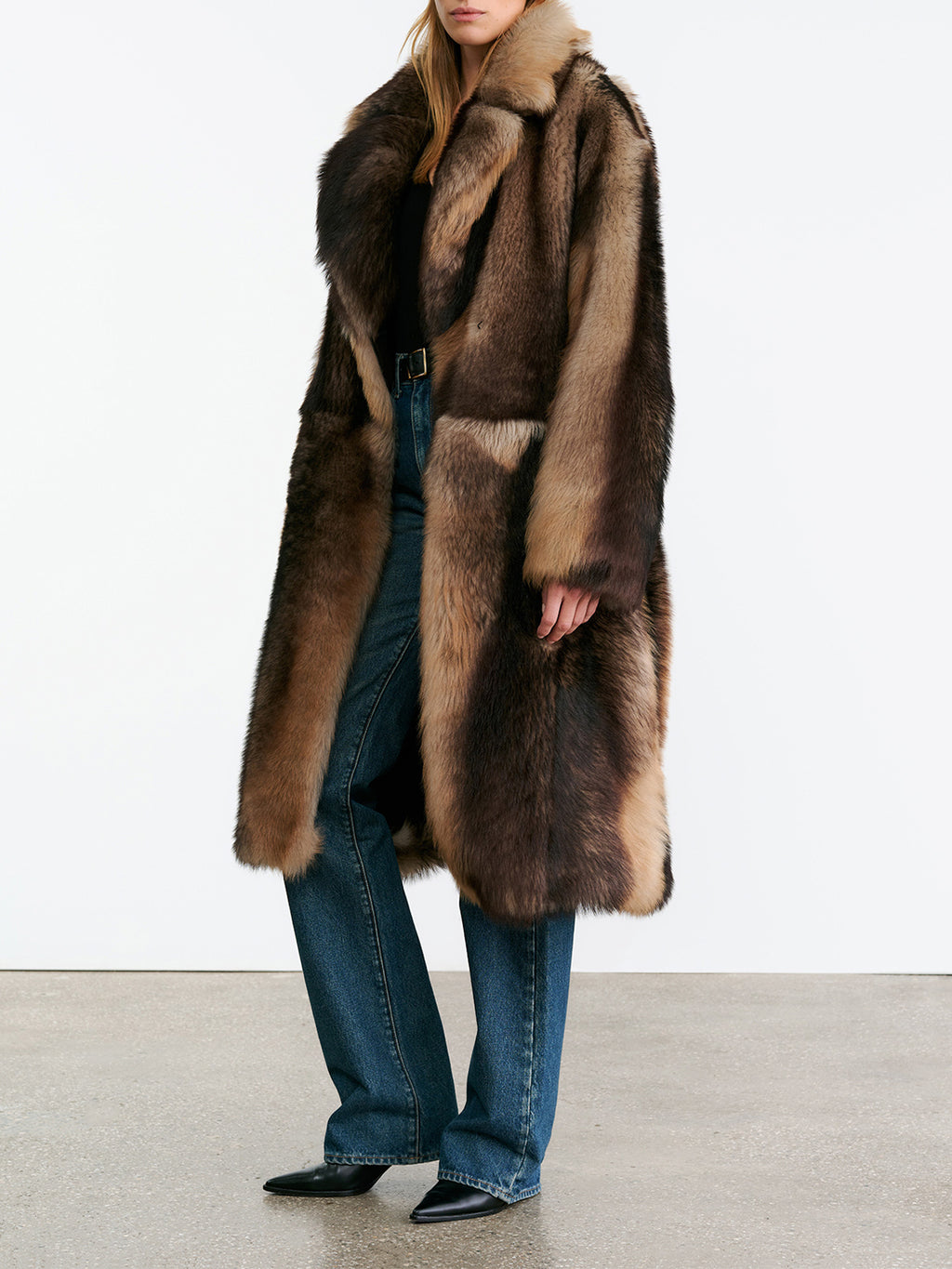 Nili Lotan's Ingrid Shearling Coat is a single-breasted jacket in plush shearling, designed with an oversized relaxed collar, exaggerated lapels, and a fur hook closure. Slant pockets and a fully lined body complete this luxe outerwear piece, while subtle hand-painted detailing adds a distinctive, artisanal touch. -