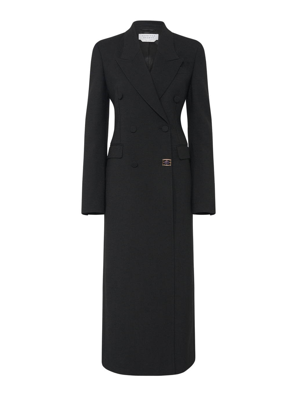 Gabriela Hearst’s Julien Coat is crafted in 100% certified recycled RWS wool suiting with a structured double-breasted silhouette. Designed to elongate the figure, it features signature Amethyst hardware at the closure for a polished, statement-making layer. -