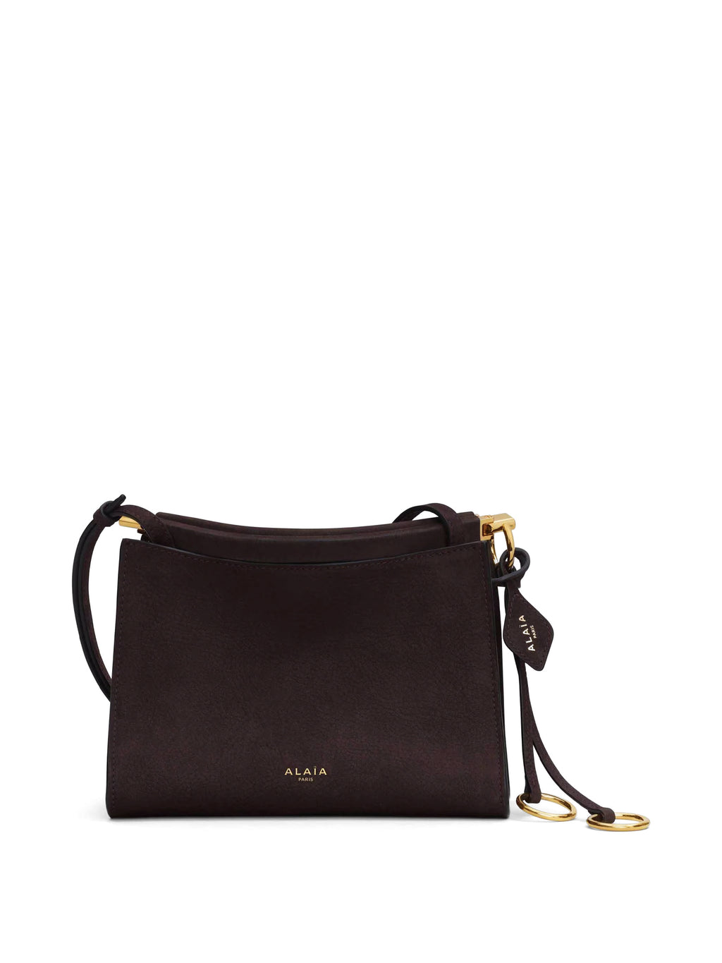 The Nubuck Small Le Click Square Bag by Alaïa is crafted from soft nubuck calfskin in a curved square silhouette that molds to the body. It features a discreet pocket with a leather-wrapped hinge opening, a front gusset with magnetic closure, and the house’s signature folded base. Decorative ties with metallic rings and an adjustable strap offer styling versatility for shoulder or crossbody wear.