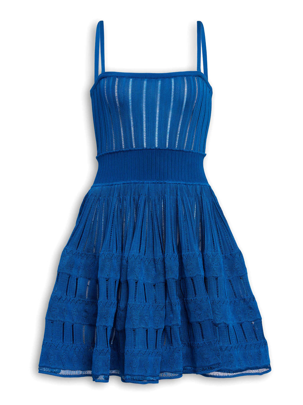The Crinoline Knit Dress by Alaïa is crafted from a lustrous crinoline knit that holds its shape. Designed with a straight neckline and removable spaghetti straps, it features a flared hem and mini length that enhance its fit-and-flare silhouette.