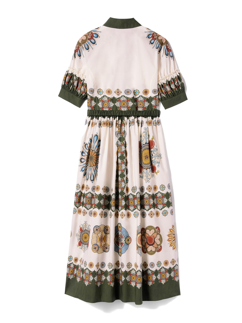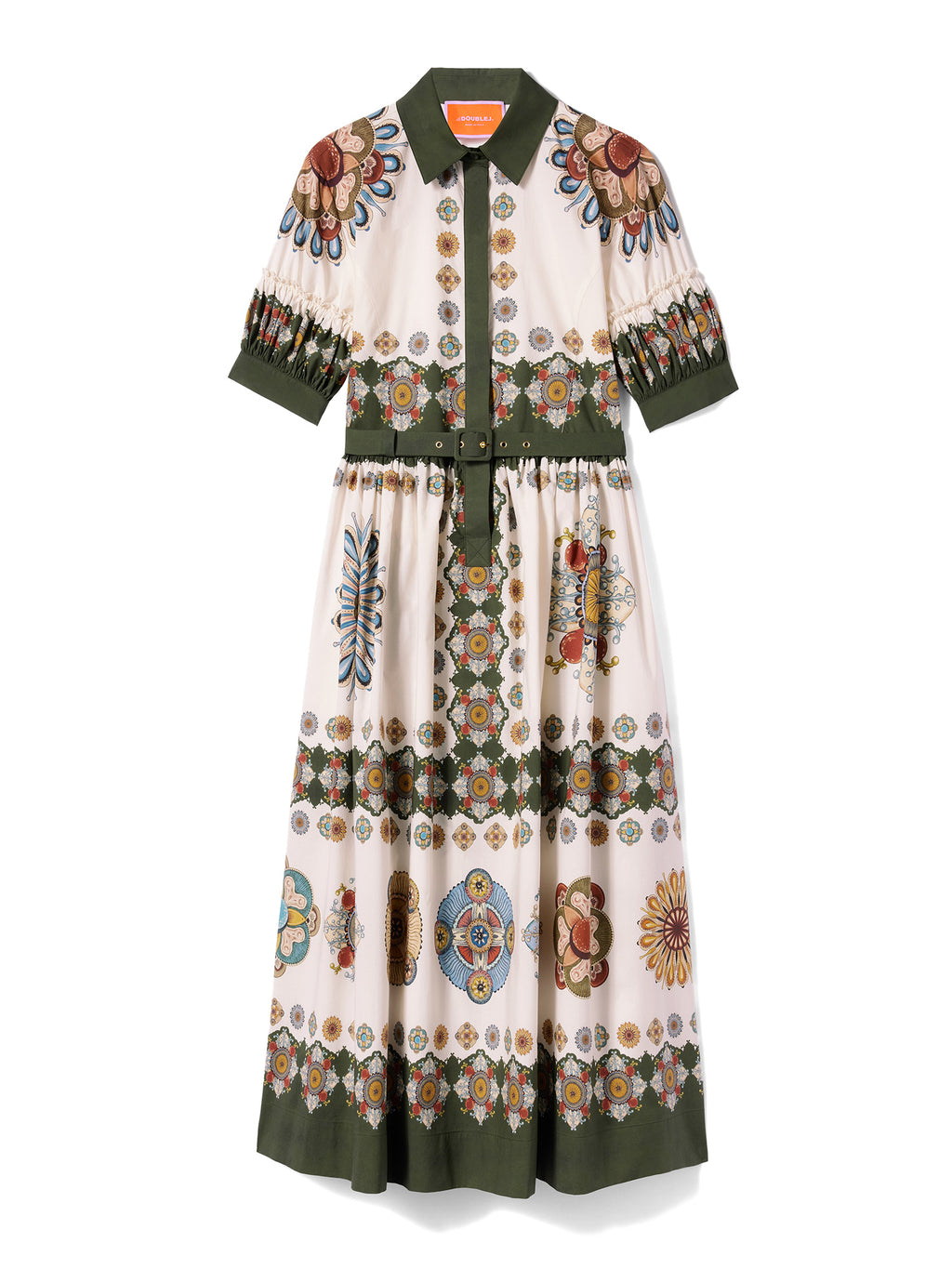 The Libertine Midi Dress from La DoubleJ is crafted in fine Italian cotton poplin with short sleeves, a cinched waist, and a full circle skirt. Its clean cut and fluid volume make it a versatile piece for day-to-night wear.