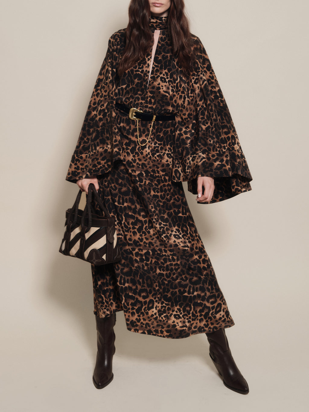 The Post Treasured Dress by Johanna Ortiz makes a statement in silk crêpe de chine. Its bold animal print is balanced by a relaxed cut, with a keyhole neckline and wide sleeves. Falling to a midi length, it transitions seamlessly from day to night with the switch of a shoe. -