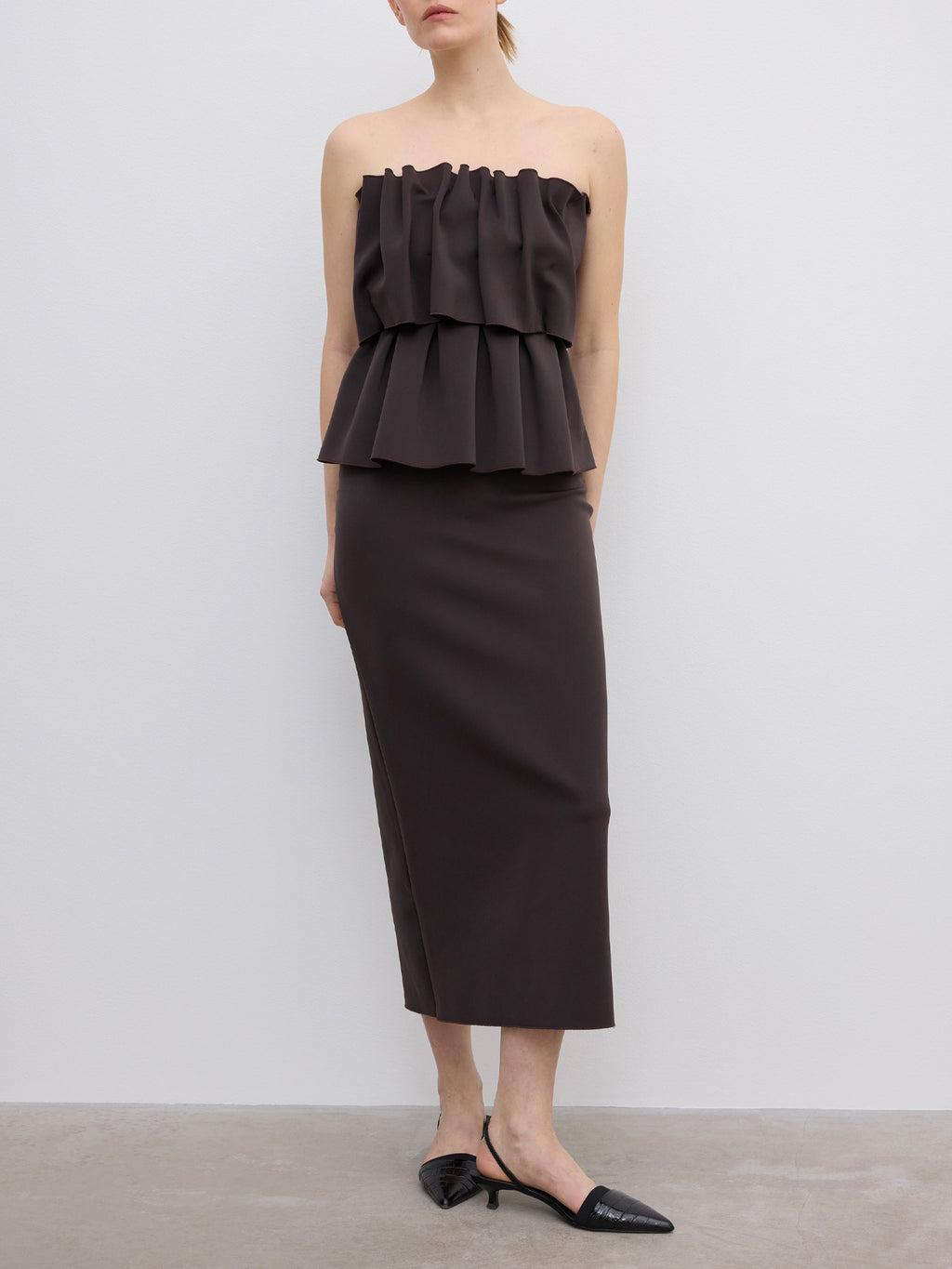 DescriptionHouse of Dagmar’s Sculpted Slim Dress is crafted from a structured fabric with a sleeveless cut, slim skirt, and elongated silhouette. Artful draping adds movement and shape. Style with minimal heels or layer under a tailored jacket.