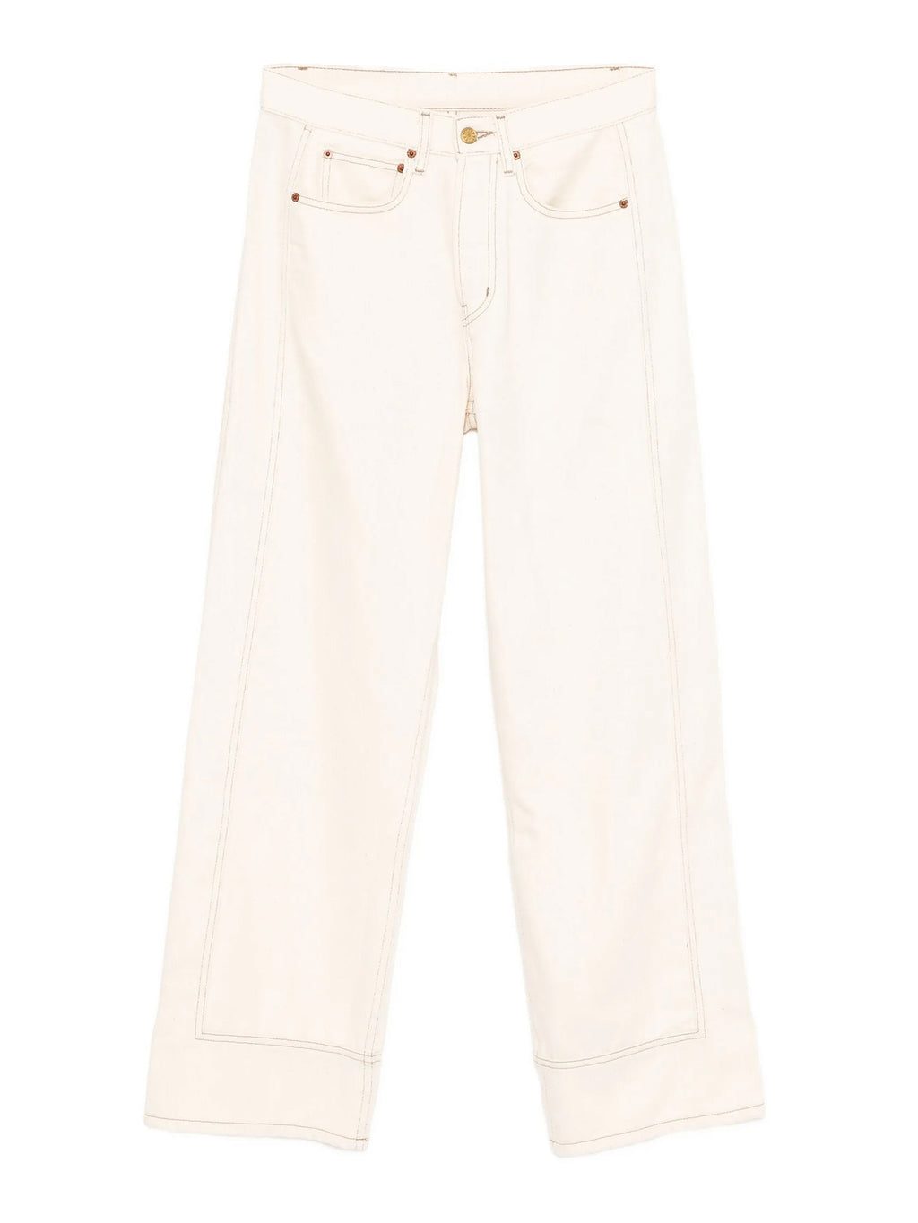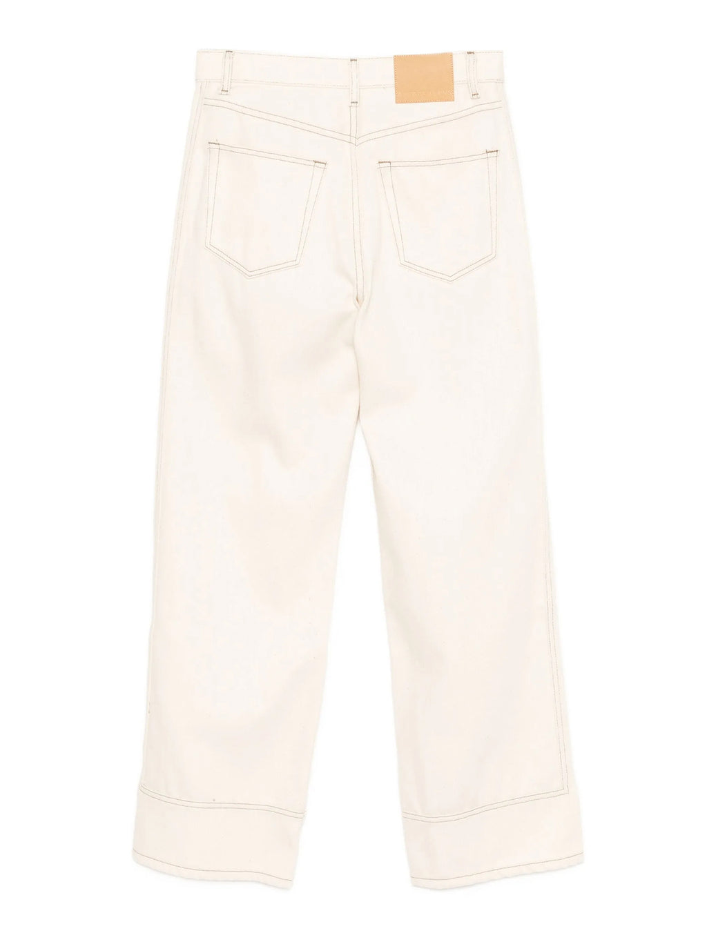 B Sides' Charlot Jeans are a boyish mid-rise slouch with a relaxed straight leg, designed with seam details reminiscent of a painter’s pant. Cut from natural undyed Japanese denim with open twill lines that evolve with wear, the style is finished with a dropped back yoke, signature five-pocket construction, copper rivets, and a brass logo button. -