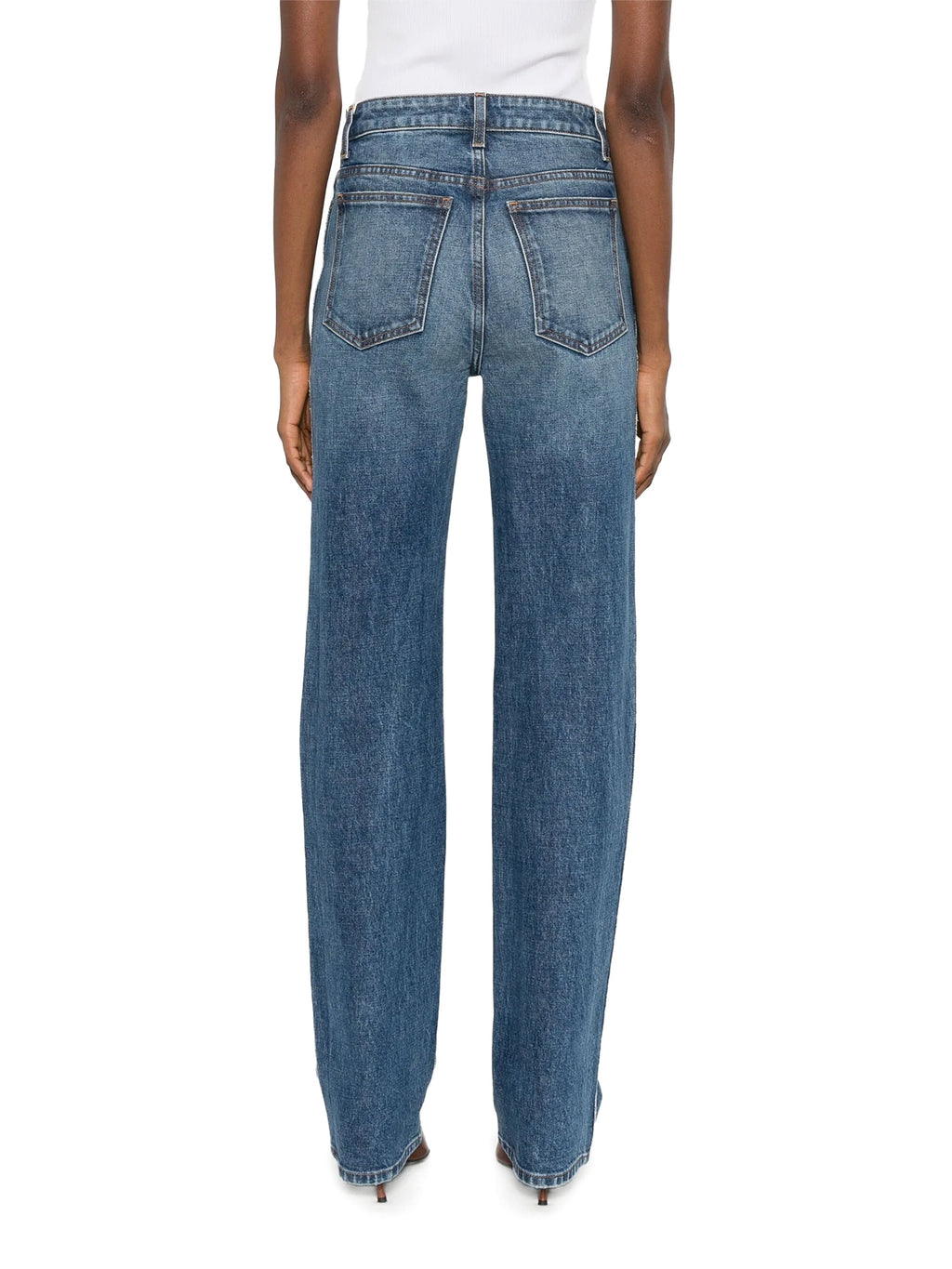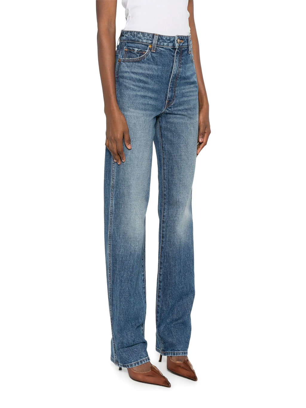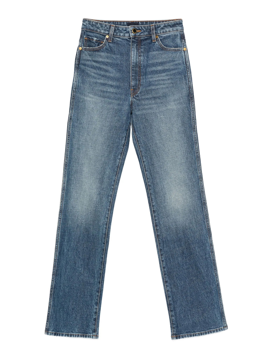 Khaite’s Danielle Jeans are a signature high-rise style designed to lengthen the leg with a clean stovepipe silhouette. Cut with precision and finished by hand, the pair is detailed with marigold topstitching and an enameled button that lend subtle distinction. The streamlined shape makes them a versatile foundation, equally suited to polished and casual looks. -