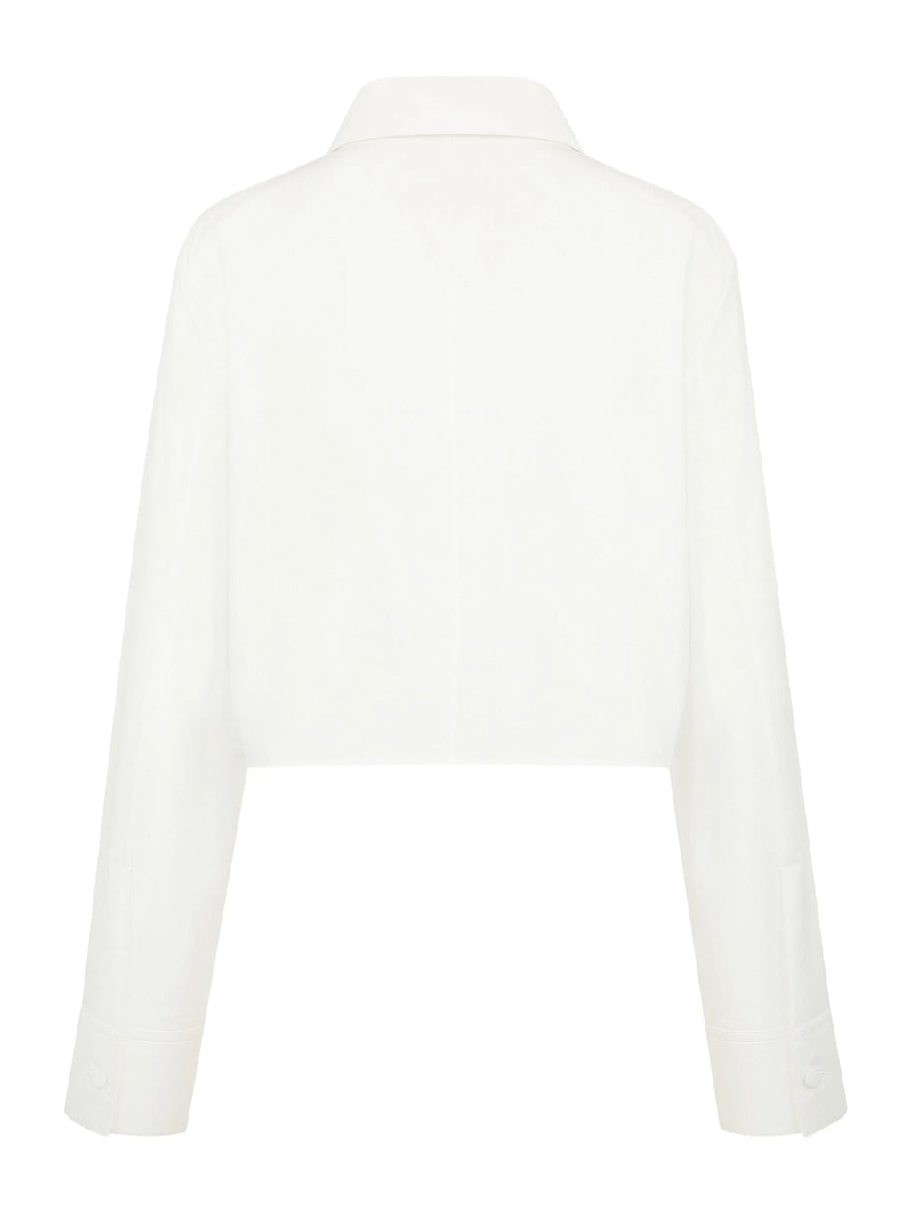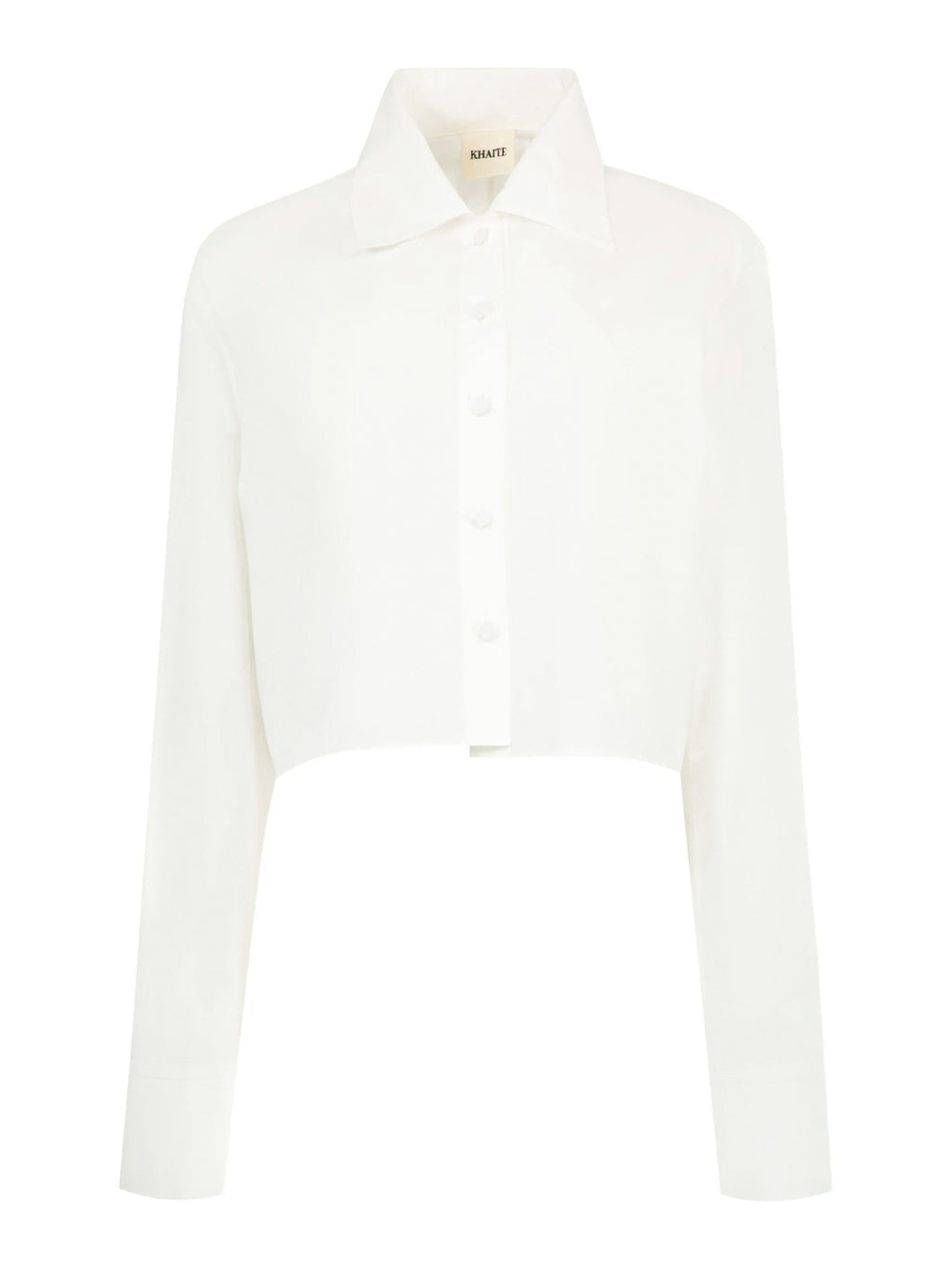 Khaite channels utility through refinement with the Jasen Top, an outerwear-inspired button-up cut in crisp cotton poplin. Designed with a straight, open fit, the silhouette carries an air that feels effortless yet precise. Style with denim or layered under structured outerwear to underscore its versatility. -