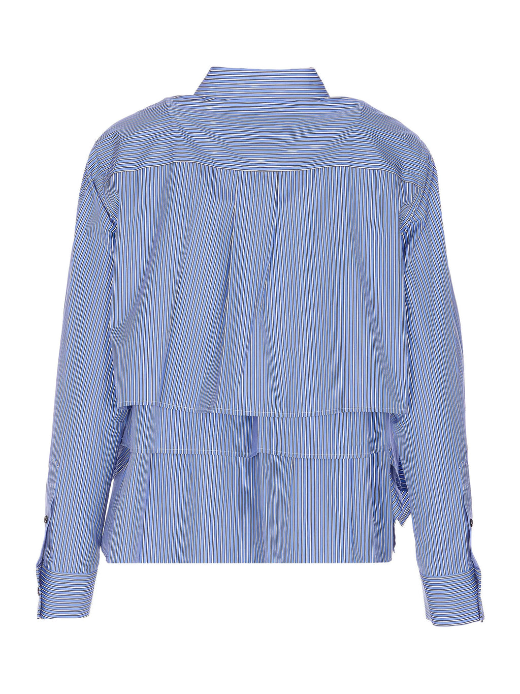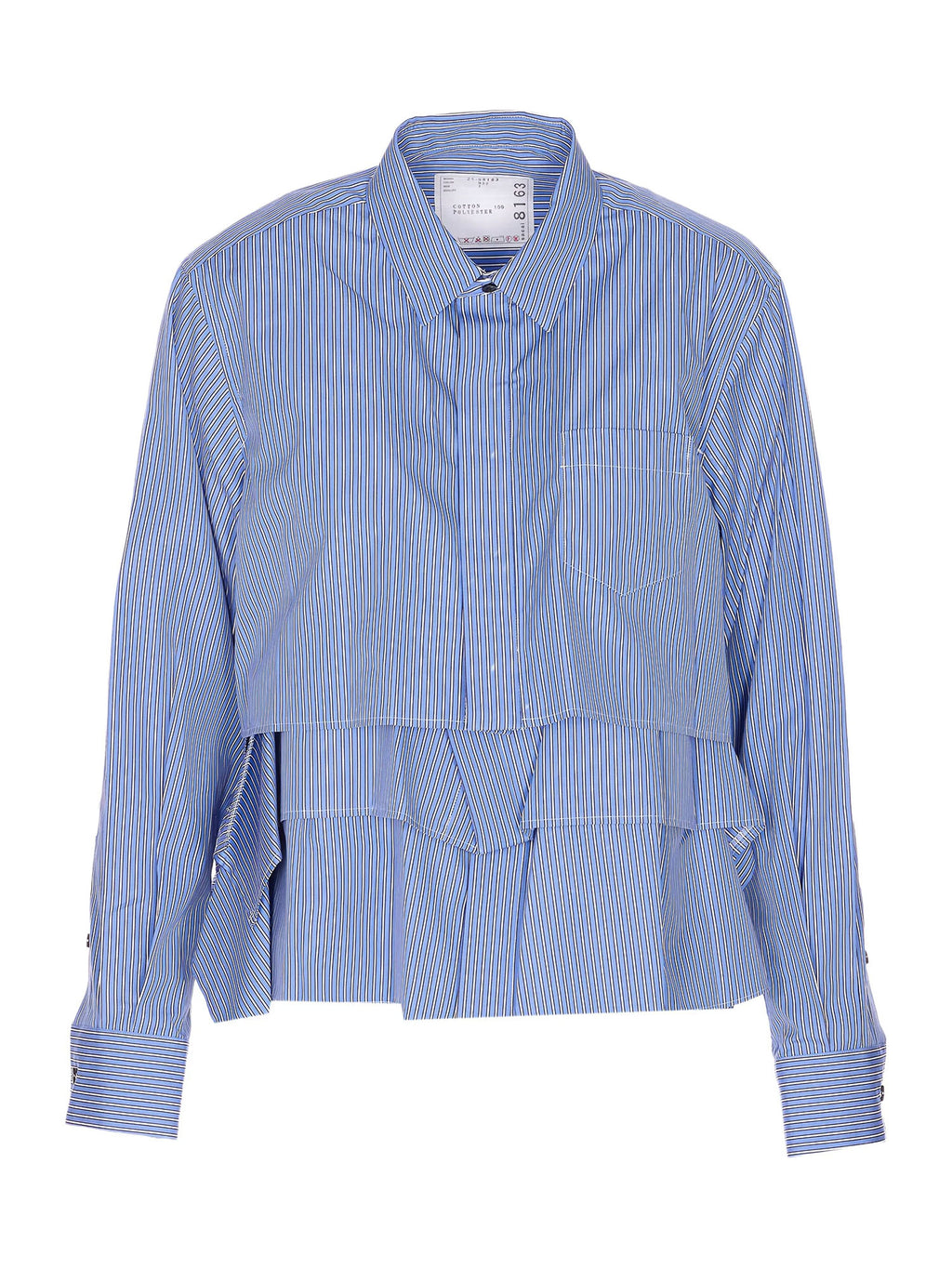 Sacai’s Ruffled Striped Poplin Shirt transforms a classic button-down into a playful statement. Cut from crisp striped poplin, it features cascading ruffles layered at the hem. Tuck it into tailored trousers or style it with denim and loafers for a more relaxed, off-duty look.