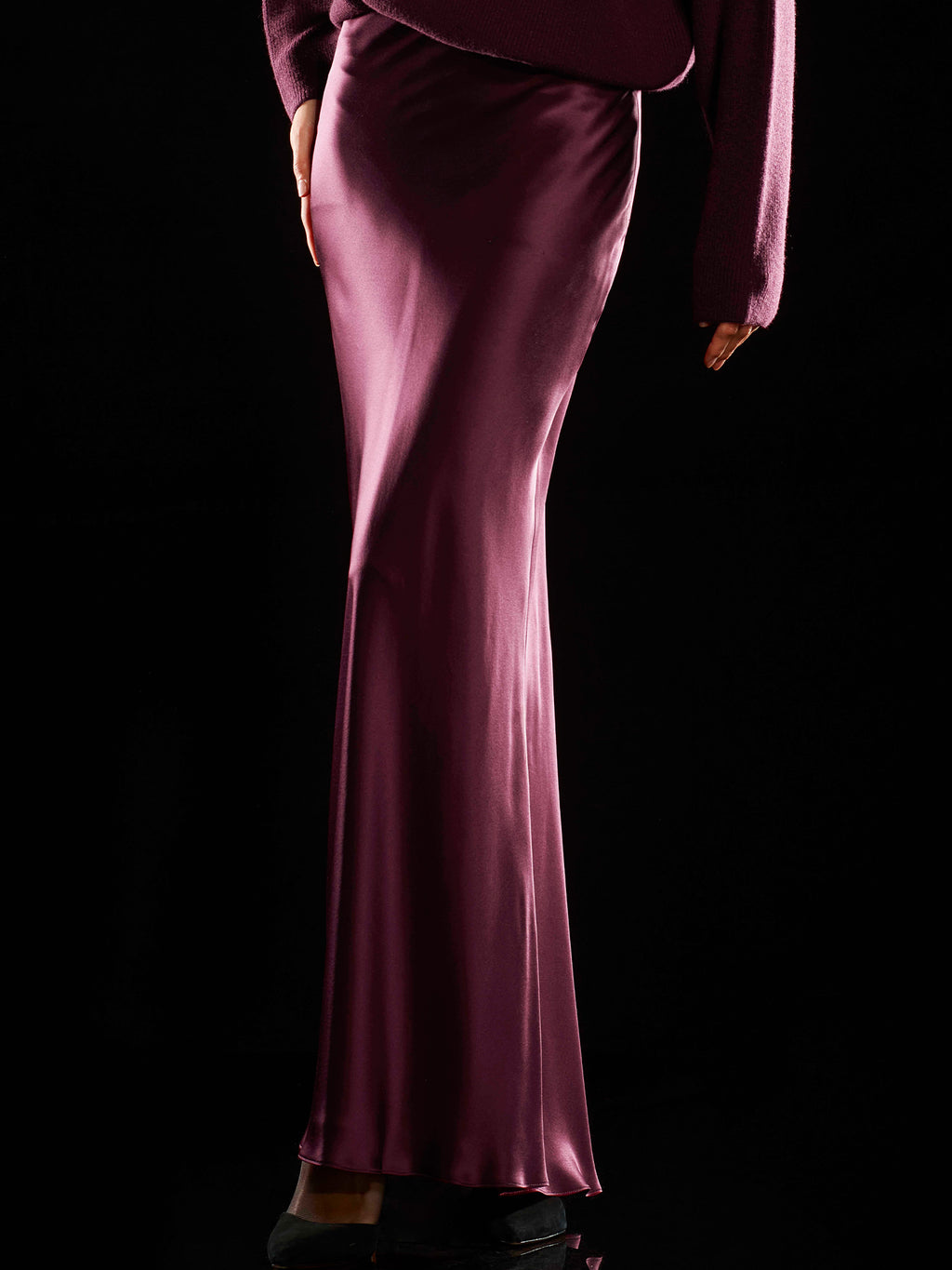 The Sei’s Bias Silk Maxi Skirt sits comfortably at the true waist with a hidden side-zip closure for a seamless finish. Crafted in deep merlot, it pairs perfectly with the matching High Neck Drape Top. -