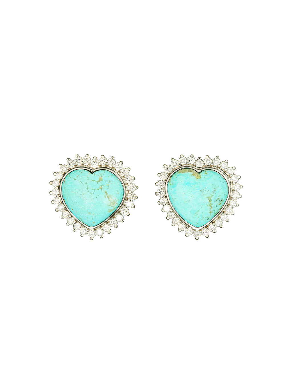 The Turquoise Heart Earrings with White Diamonds by GuitaM feature striking turquoise hearts framed by brilliant white diamonds. Set in 18k white gold, this one-of-a-kind pair brings color and sparkle to a statement silhouette. -
