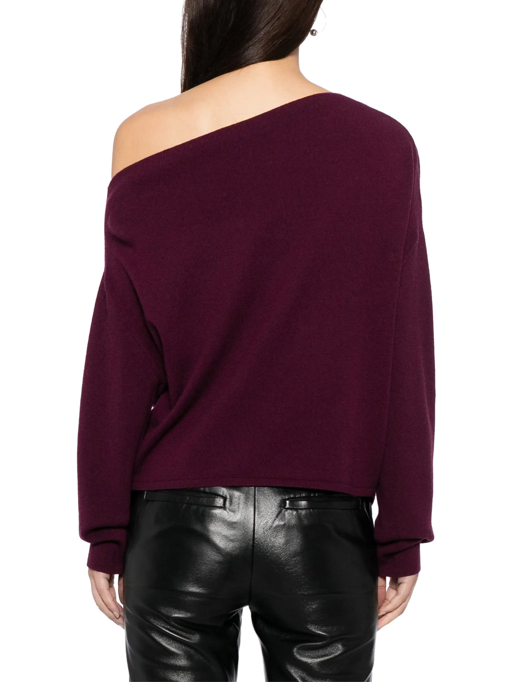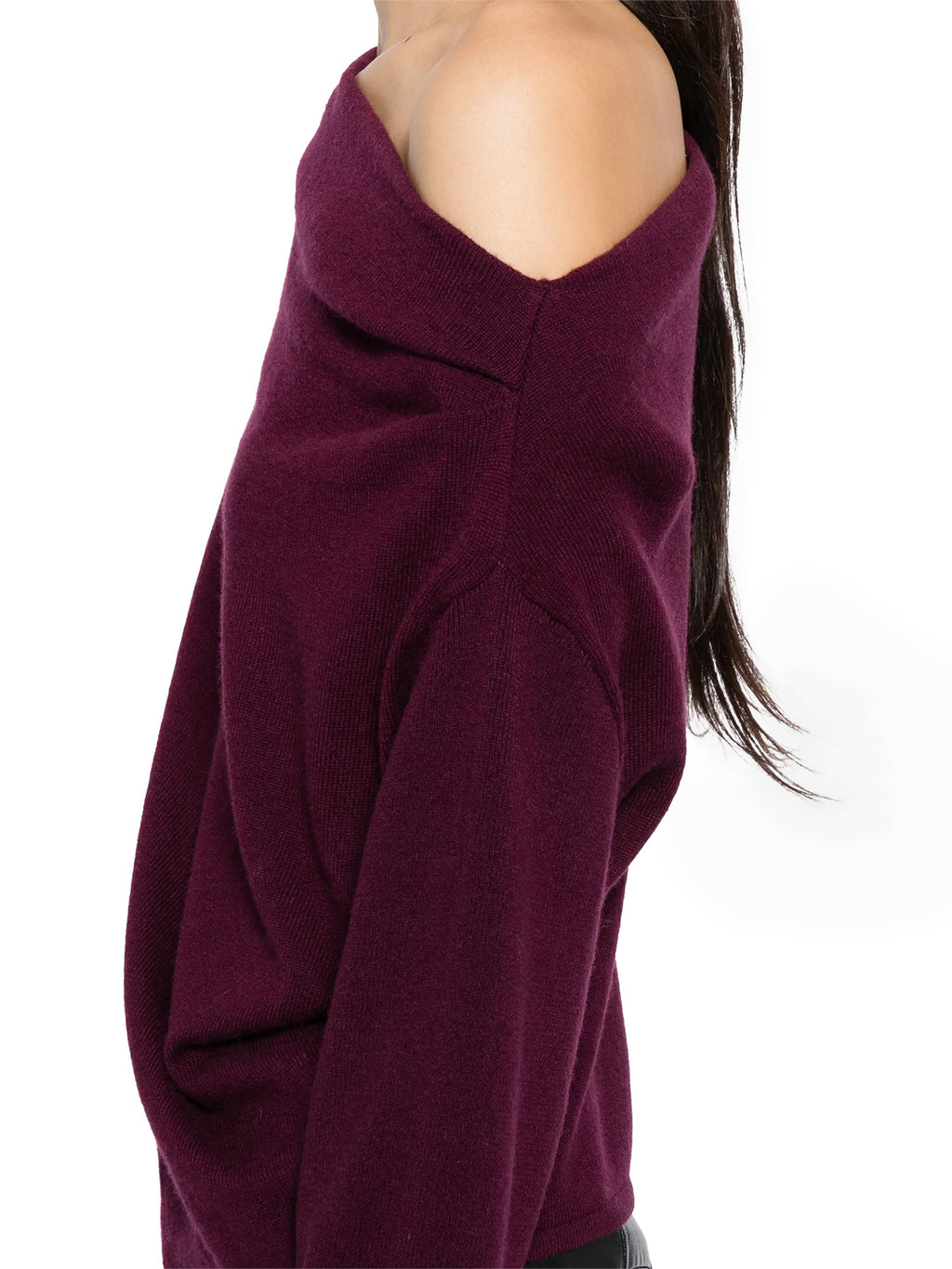 Crafted in a merino wool-cashmere blend, the Long Sleeve Asymmetric Drape Sweater by The Sei features an off-shoulder cut at the left shoulder in a rich merlot hue. Wear it with tailored pieces or dress it down with denim. -