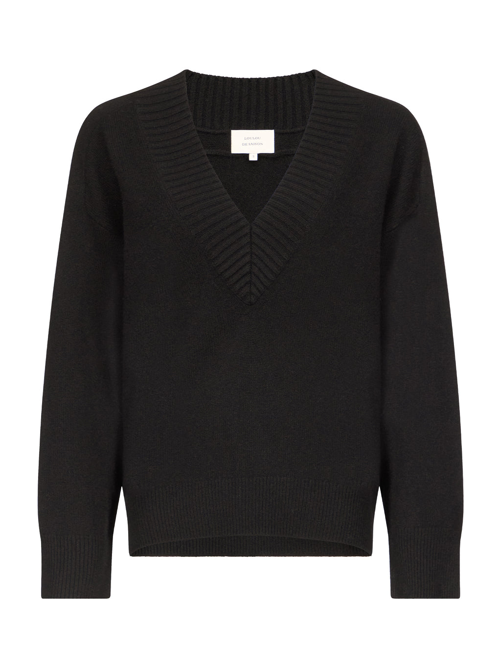 The Sage Sweater by Loulou de Saison is crafted in pure cashmere. Designed with a long, straight fit, it features a deep V neckline framed in ribbing, subtly revealing the skin. Perfect for layering over tanks, tees, or wearing alone. -
