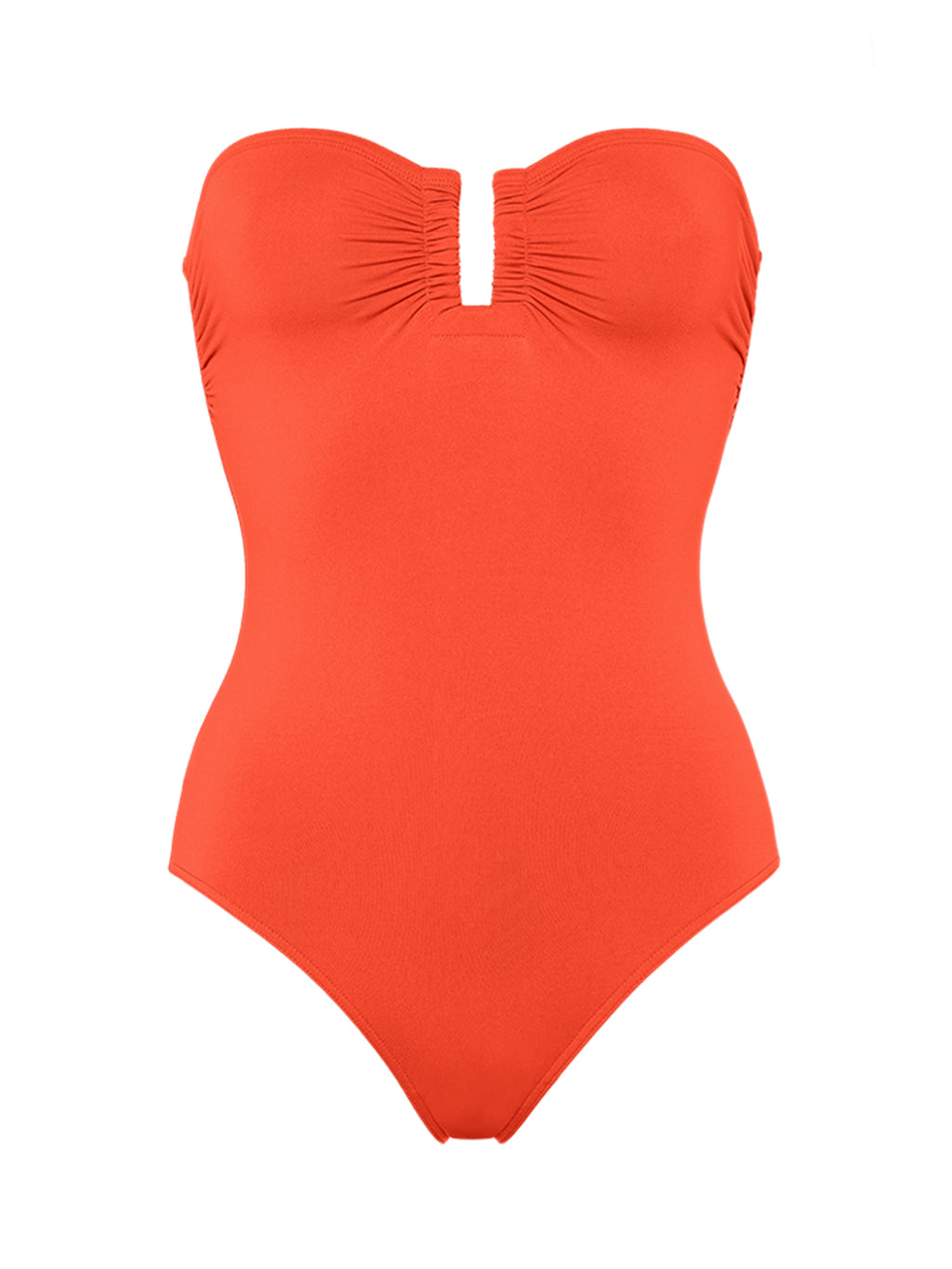 The Cassiopée One-Piece is an iconic Eres bustier silhouette designed with gathered cups framed by the house’s signature U-shaped link. Supported by discreet gripper tape, it stays securely in place while enhancing a wide range of body types. The clean, sculpted fit underscores the brand’s mastery of streamlined swimwear design. -