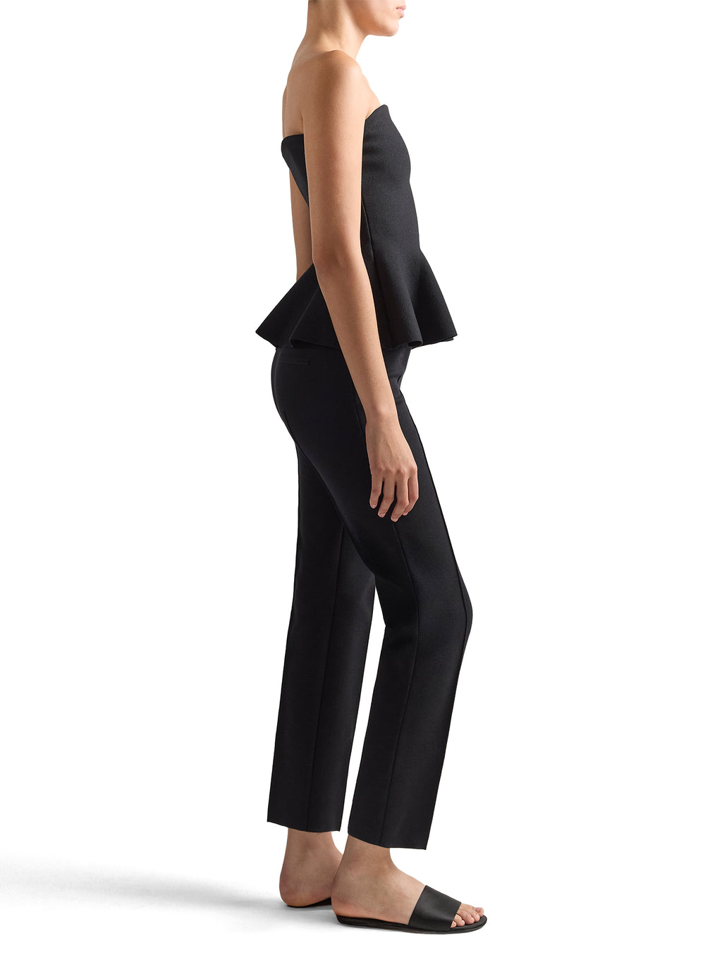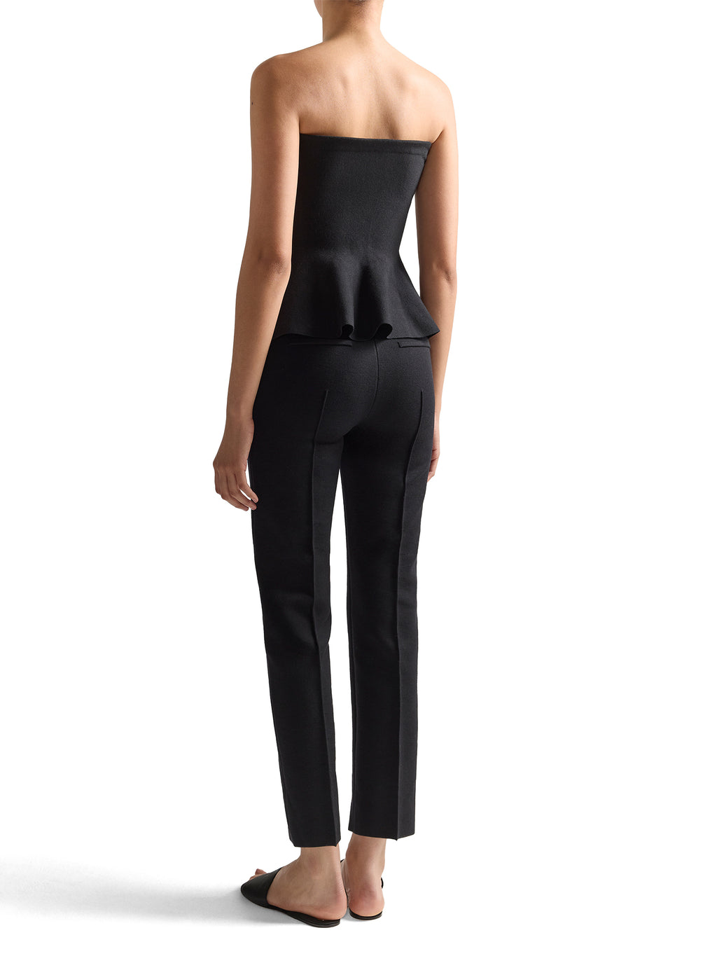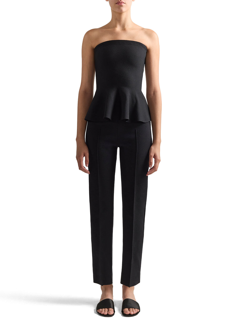 High Sport's Eric Top is a strapless, pull-on top with a fitted body and softly flared peplum hem. Perfect for pairing with High Sport's pants or even with denim, this top is knit in Italy from a fine wool blend with a smooth hand and natural stretch. -