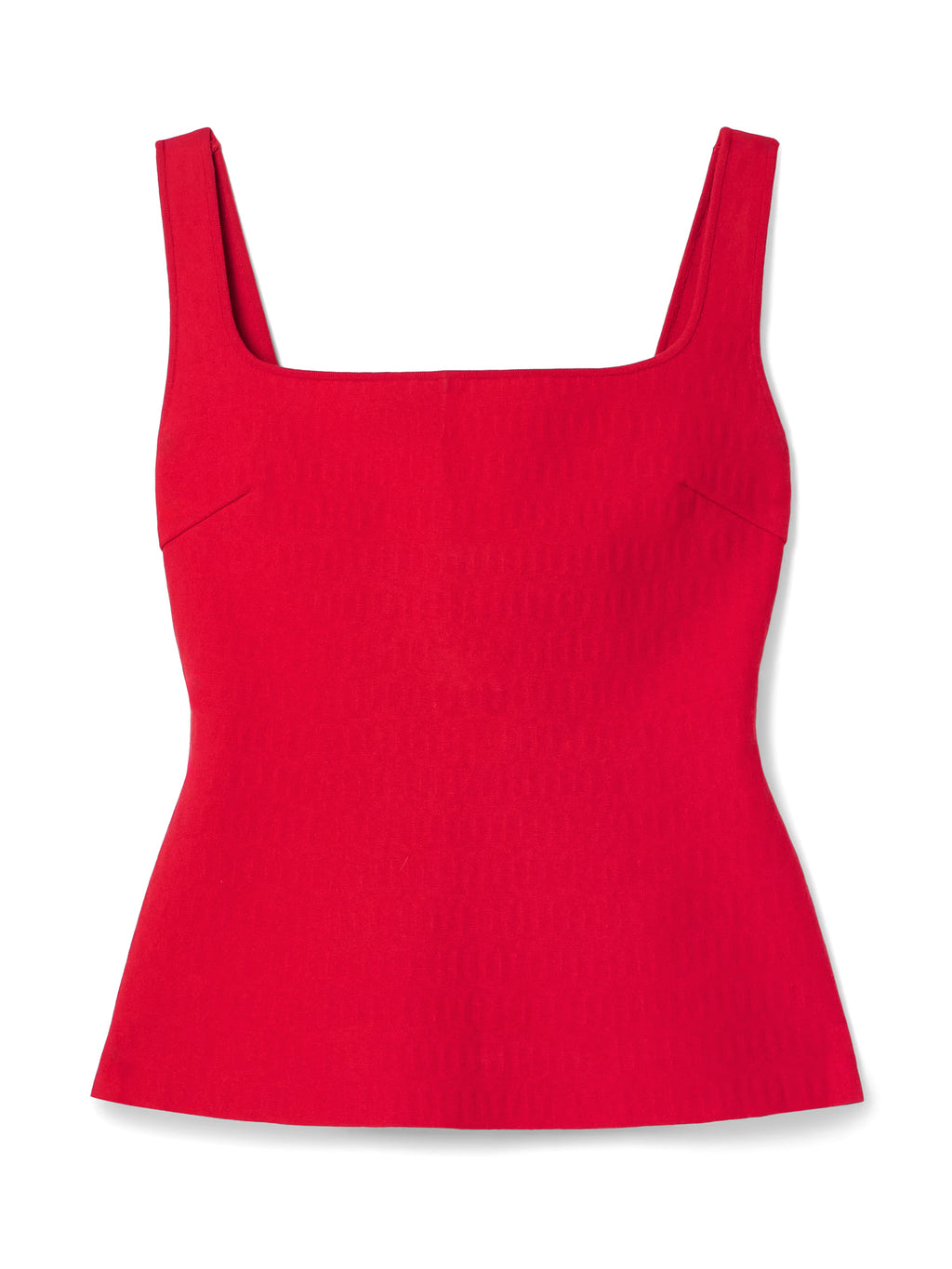 High Sport’s Geo Inna Tank is crafted from a soft cotton blend with a jacquard-woven geometric motif that adds subtle texture. Designed with a square neckline, slim fit, and gently flared hem, it offers a flattering silhouette. Pair with the matching Geo Kick Pants and your favorite statement necklace for a coordinated set. -