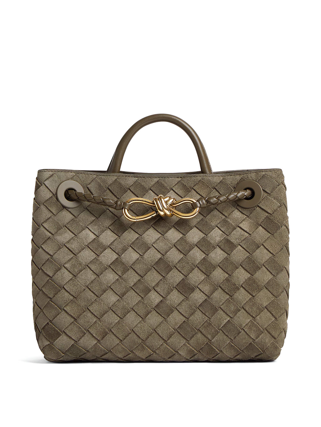The Small Andiamo Bag by Bottega Veneta showcases the brand's meticulous craftsmanship with its supple Intrecciato suede design and signature knot detail. The bag features one main compartment and comes with a sliding cross-body strap to complete the piece. -