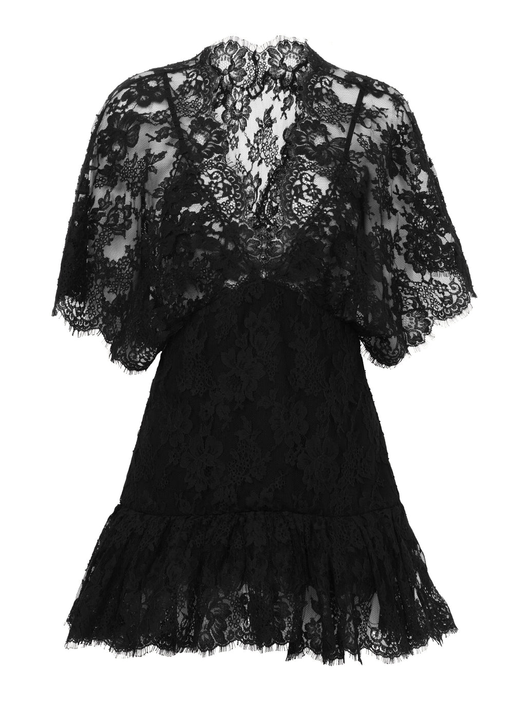Chloé’s Fitted Lace Ruffle Top is cut from floral lace with a silk-blend lining for subtle coverage. Designed with a deep V-neckline, flouncy hem, and fitted silhouette, it brings a romantic edge to tailoring. Style it with trousers and a statement necklace for an elevated finish.
