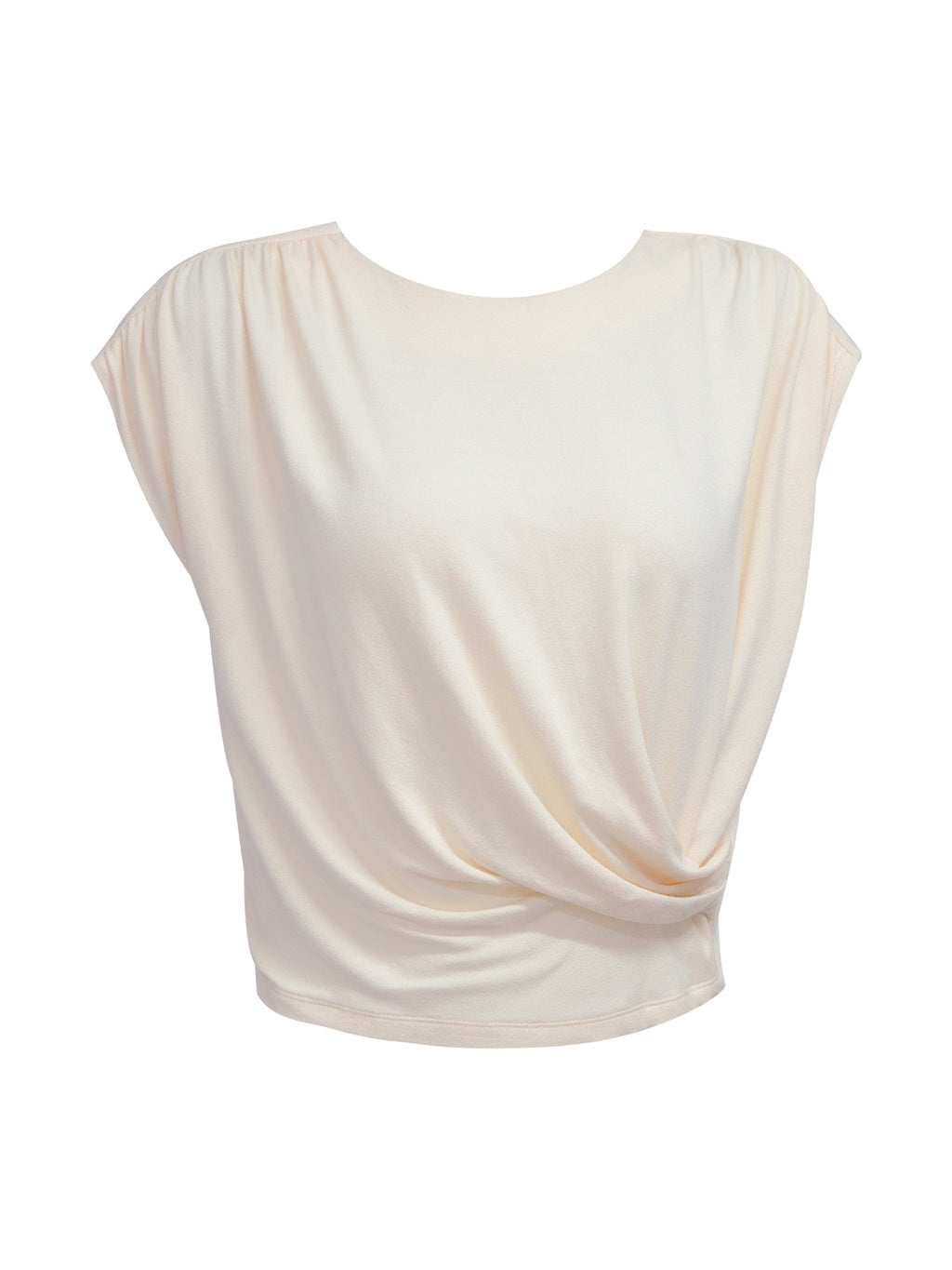 The Matthiola T-Shirt by Pink Filosofy is an elevated essential crafted in a soft viscose-blend knit. A clean round neckline and subtle shoulder cuts add quiet structure, while a gentle front drape creates a refined twist that gives the silhouette a sculpted, modern feel. In timeless Ecru, it pairs effortlessly with jeans, trousers, or the matching Linda Skirt. -