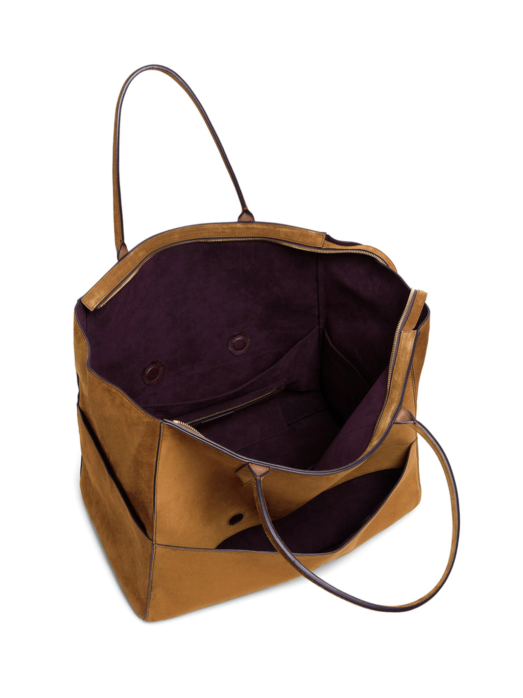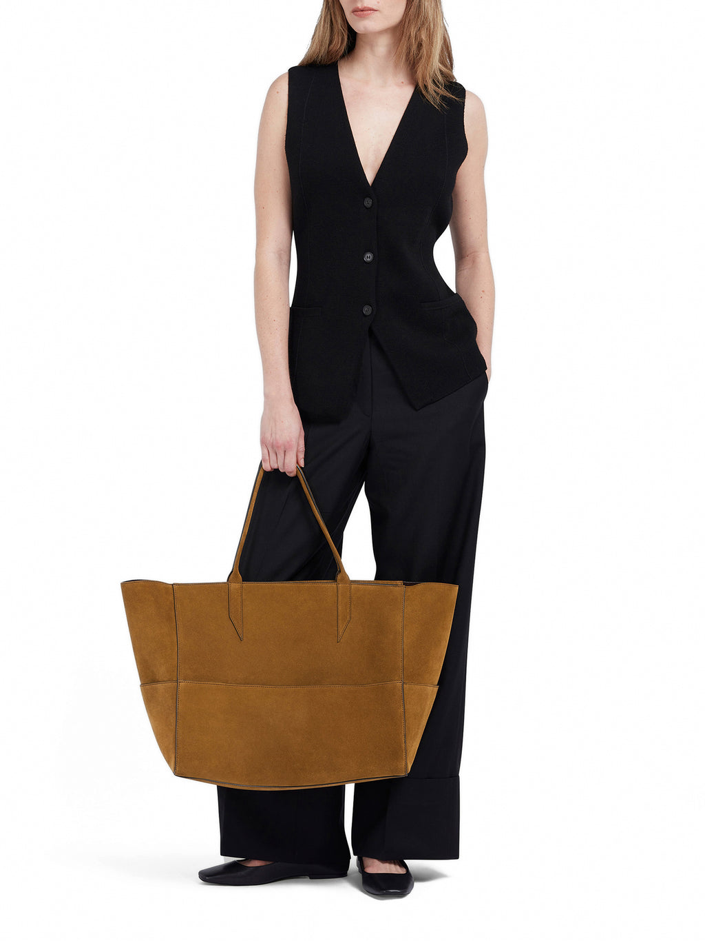 Métier’s Large Incognito Tote is designed with a striking yet understated silhouette, crafted to be generously sized while remaining remarkably lightweight. Over-the-shoulder handles offer easy carry, and a contrasting lower panel adds subtle dimension to the clean exterior. External magnetic pockets and thoughtfully arranged internal compartments balance form and function, with a capacity that fits a 16-inch laptop. Made from Métier’s signature Italian suede, the design showcases exceptional softness and durability. Historically favored for its hardwearing nature, the suede is further enhanced with a special treatment to resist pilling and fibre loss. Over time, natural signs of wear emerge as a testament to every mile the bag has travelled. -