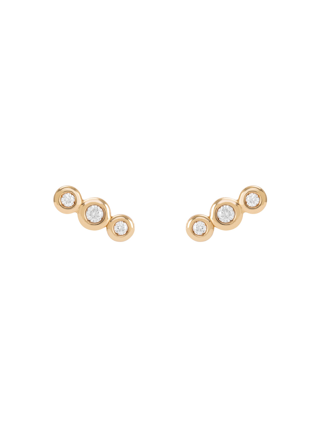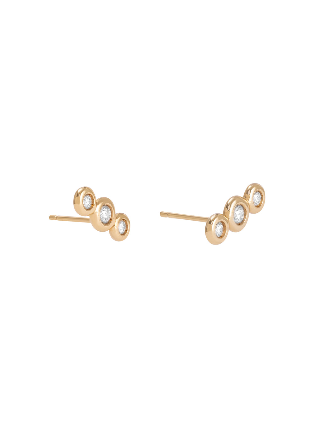 The Trio Bubbles Earrings by Giovana Brait are crafted in 18k yellow gold and set with three diamonds on each side. An elevated essential from the Bubble Collection. This piece is ineligible for promotional discount. -