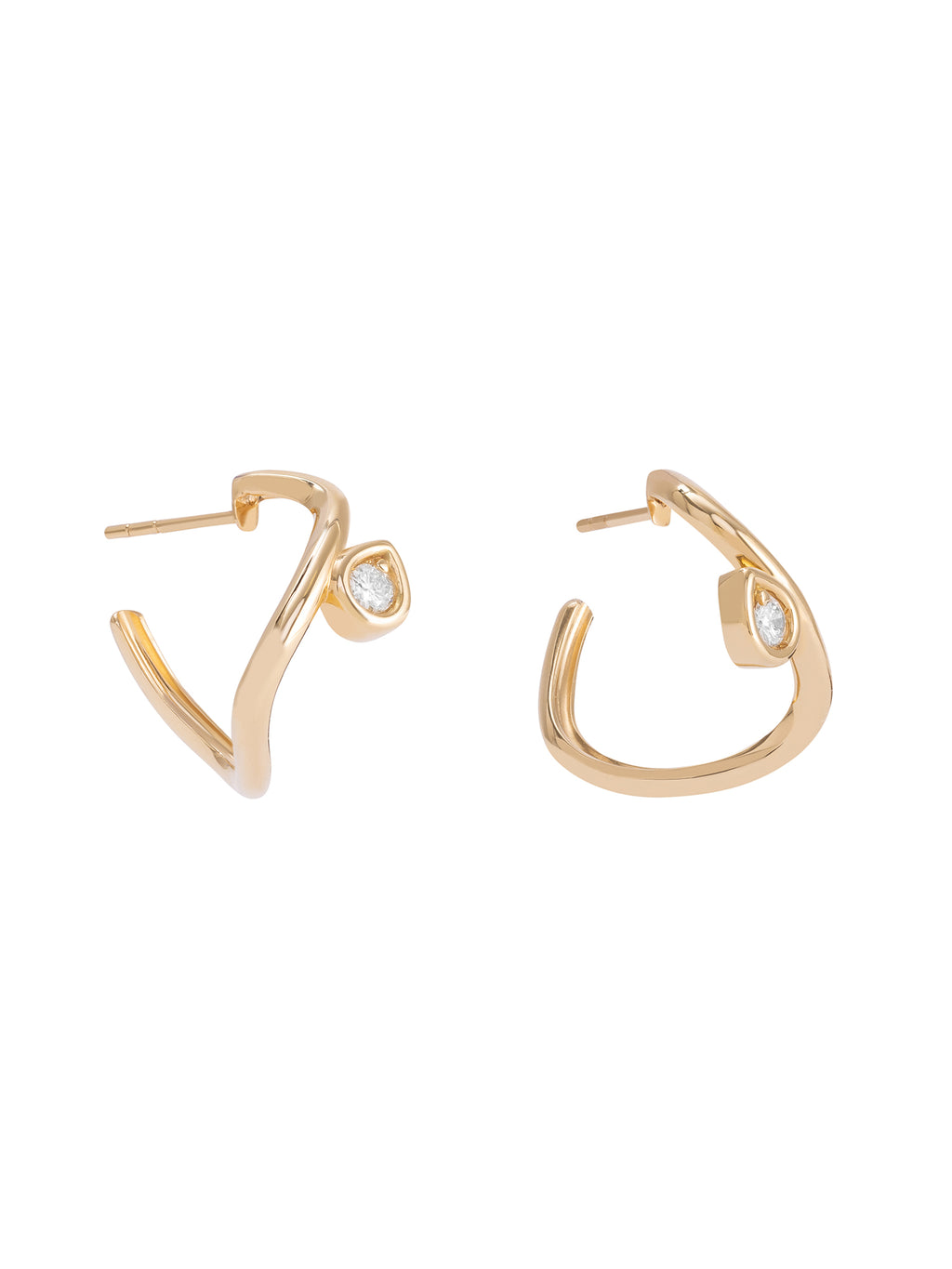 The Wave Hoop Earrings by Giovana Brait are crafted in 18k yellow gold, designed with a subtle drop finished with a round diamond. A versatile piece from the Wave Collection, perfect for ear stacking. This piece is ineligible for promotional discount. -
